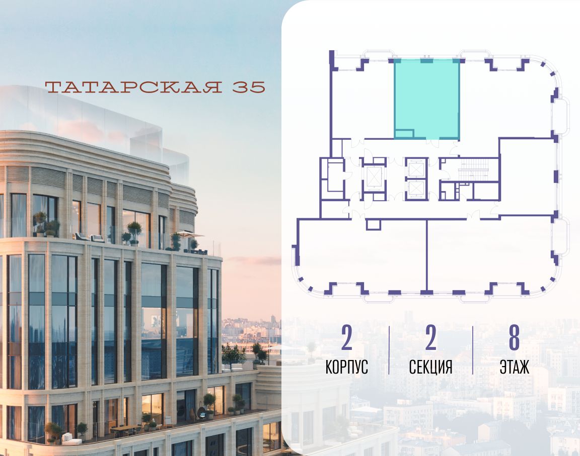 Продается просторная квартира площадью 118.20 м2 в жилом комплексе ТАТАРСКАЯ, 35. Квартира находится в 2 секции корпуса 3. Этаж 17-й из 23. Квартира без чистовой отделки, с просторной кухней 52.20 м2. Жилая площадь 33.10 м2. Высота потолка от 3.50. ТАТАРСКАЯ, 35 - новая архитектурная доминанта Замоскворечья, достопримечательность на фотопанорамах исторического центра Москвы. Элитный дом, созданный для тех, кто умеет смотреть далеко вперед, мыслить масштабно и воплощать собственный сценарий жизни. Вдохновляющие прогулки по променаду набережной, в уютных переулках, в парке ''Зарядье'', в Михайловском саду и Репинском сквере. Наслаждение высоким искусством в Третьяковской галерее, Доме Музыки, театральном музее им. А.А. Бахрушина, театре на Малой Ордынке. За окнами - Кремль, высотка на Котельнической, панорамы Замоскворечья и острова Балчуг, огни Садового кольца. Собственные спорт-румы, детская, репетиторская, бьюти-пространства, деловое пространство с коворкингом, переговорной и сигарной. Собственный трехуровневый фитнесс-центр с бассейном, тренажерным залом, сауной, хаммамом, массажным кабинетом. Площадь двора - 1,8 га, половина территории покрыта деревьями, кустарниками и лужайками. Дом расположен внутри Садового кольца - отсюда в считанные минуты можно добраться до важнейших мест столицы: достопримечательностей и парков, театров и ресторанов, деловых и административных центров. 7 минут до Кремля на автомобиле, 15 минут до Третьяковской галереи и 8 минут до Садового кольца пешком. Планировочные решения и визуализации предварительны, возможны изменения.