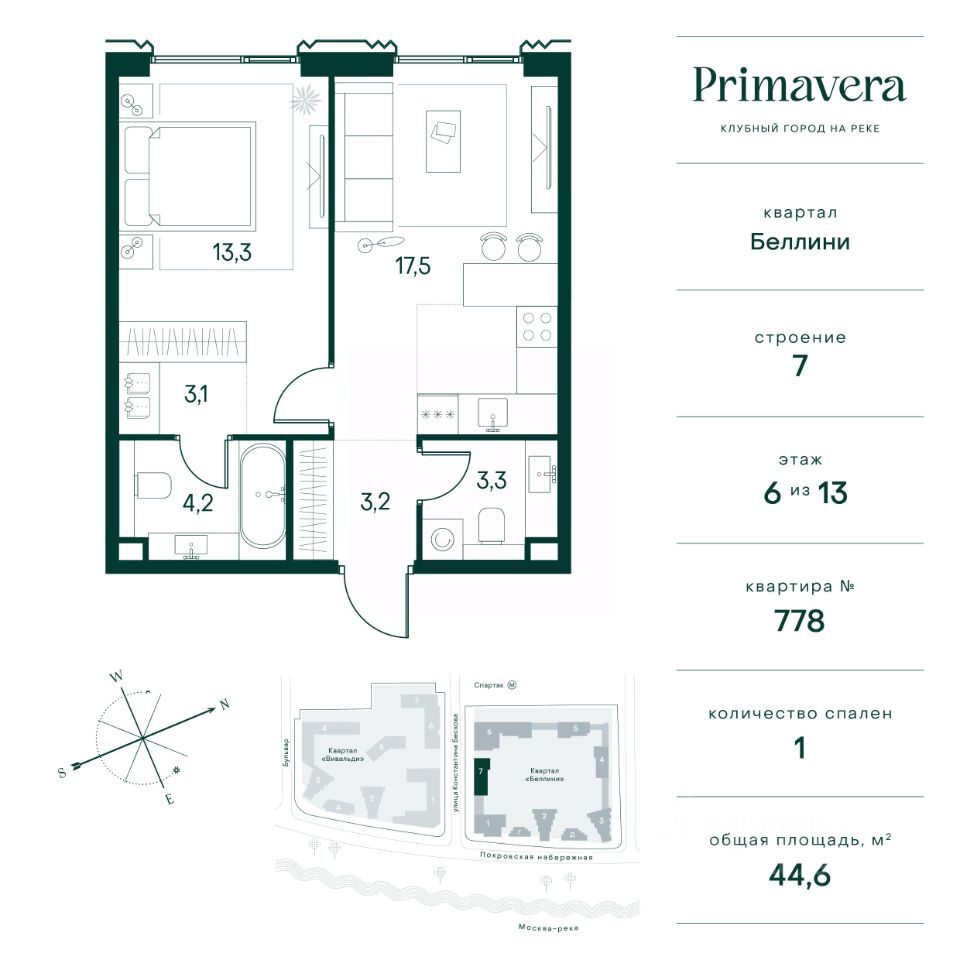 Клубный город на реке Primavera — это современный жилой комплекс премиум-класса, расположенный на первой береговой линии Москвы-реки в экологически чистом районе Покровское-Стрешнево. Под панорамными окнами квартир находится собственный экопарк с продуманной сетью прогулочных дорожек и современными детскими и спортивными площадками. За парком расположена набережная с собственным пляжем и зонами для отдыха. Клубный город на реке Primavera предлагает широкий выбор планировок для различных жизненных сценариев: от просторных однокомнатных квартир до пентхаусов и жилых помещений с террасами и патио. Выберите из 120 вариантов эргономичных планировок стандартного и евроформата. Из каждой квартиры открываются красивые виды на реку с углом обзора в 270 градусов. Дизайнерские лобби предлагают панорамный обзор на благоустроенный двор. Высокие потолки в 6 метров и качественная отделка создают атмосферу, схожую с пятизвездочными отелями. В Primavera есть всё необходимое для комфортной жизни в мегаполисе: •Образование для детей в шаговой доступности: 4 школы, 8 детских садов и развивающие центры с кружками и секциями. •Удобства на расстоянии приятной прогулки: супермаркеты, кафе, рестораны с верандами, салоны красоты, аптеки и многофункциональный центр для шоппинга и развлечений. •Умный дом: автоматизированное бесконтактное управление основными системами доступа и безопасности через мобильное приложение. Клубный город на реке Primavera выгодно сочетает комфорт городской жизни с близостью к природе. Живите в месте, где все создано для вашего удобства!