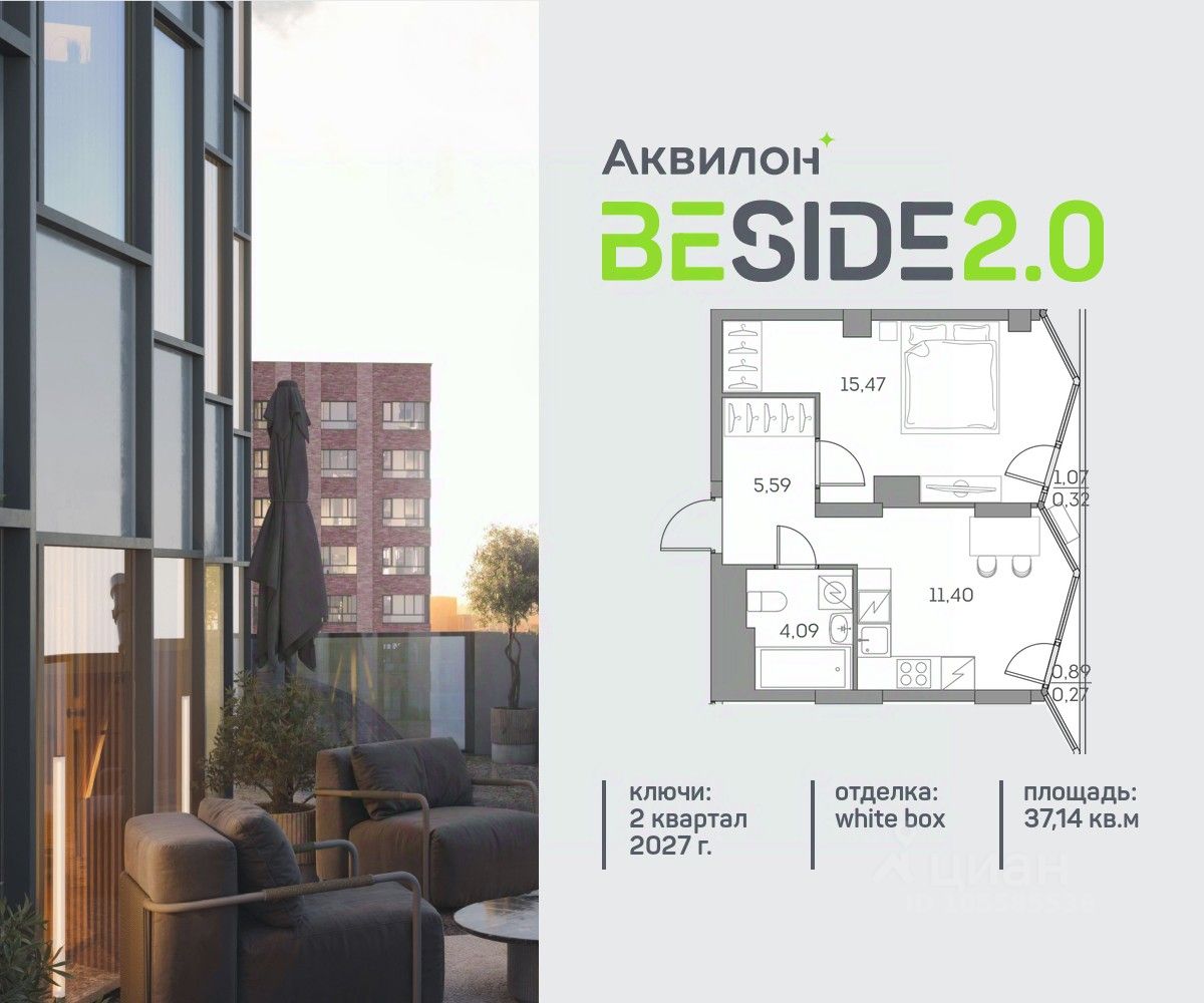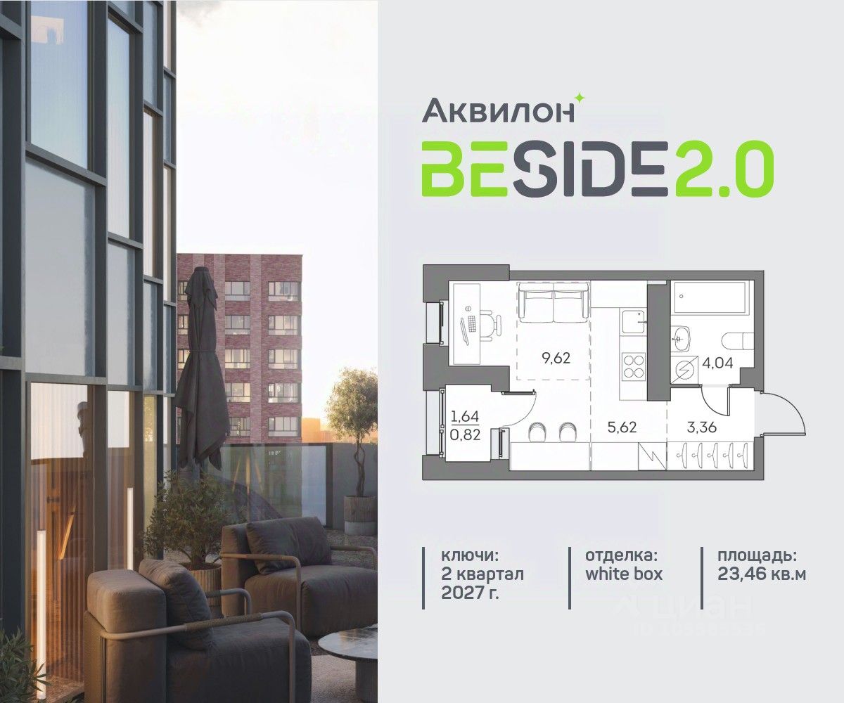 Продажа от застройщика. Продается просторная студия на 18 этаже современного жилого комплекса Beside 2.0. Вид из окон: во двор. Срок сдачи: 2 кв. 2027 г. Квартира с лоджией. Отделка WhiteBox: - Вам не придется заниматься черновыми работами. - Возможность реализовать любой дизайн-проект. Расположение: В Beside 2.0 все необходимое - в шаговой доступности, не нужно тратить много времени на дорогу до работы, школы и поликлиники, походы в магазины и кинотеатры. Квартал расположен на пересечении ключевых транспортных магистралей Москвы, что позволяет быстро и легко добраться до любой нужной локации. Выбирайте наиболее подходящее занятие или попробуйте все! - Спортивные центры - Ретейл на первых этажах - Событийная площадь с амфитеатром - Дворовые площадки для активностей Транспортная доступность: - 5 минут на машине до ТТК - 7 минут на машине до Садового кольца - 7 минут пешком до станции ''Нижегородская Внутренняя инфраструктура Beside 2.0: - Своя школа на 825 учеников - Просторное и светлое гранд-лобби - Коворкинг на открытом воздухе - Детский клуб Akvilon Kids - Подземный паркинг - Колясочные и велосипедные - Сити-боксы для хранения - Профессиональная управляющая компания Преимущества: - Технология энергоэффективности Termo-S, снижающая теплопотерю домов и позволяющую экономить на электроснабжении - Soundstop - технология дополнительной шумоизоляции на 39 дБ в квартирах с WhiteBox и чистовой отделкой - Система умного дома inHome 3.0 позволит контролировать коммунальные расходы, оплачивать счета и пользоваться услугами, не выходя из умного дома - Vent-In - система циркуляции воздуха в каждой комнате