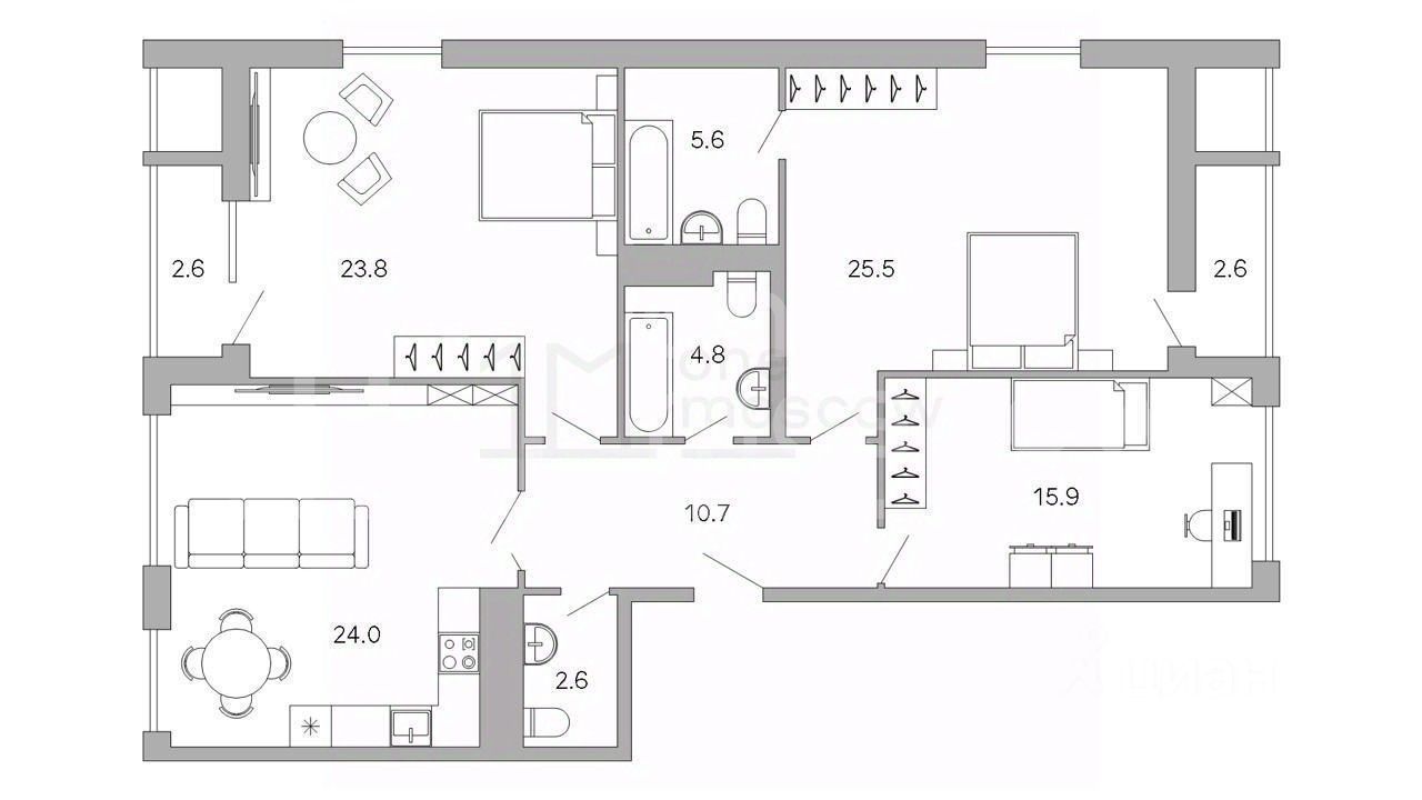 Видовая квартира с тремя спальнями в комплексе бизнес-класса ''Событие''. Квартира со свободной планировкой общей площадью 113 м² расположена на 24-м этаже в корпусе 2. Функционально возможно спланировать кухню-гостиную с лоджией, мастер-спальню с угловым панорамным остеклением и собственным санузлом с окном, две спальни с выходом на лоджию, два санузла и холл. Высота потолков 3,1 метра. Панорамные окна ориентированы на две стороны света. В жилом комплексе имеется подземный паркинг. Машино-место в сделке не предусмотрено. Главное о доме. ''Событие'' — городской квартал в Раменках, между длинными бульварами и зелёными массивами. Архитектура собирает башни и камерные корпуса в единую линию: спокойная палитра, крупные окна, чёткие вертикали. Во входных группах — натуральные материалы, мягкий свет, стойки ресепшн и зоны для коротких встреч. На стилобате проложили бульвары и дворы без машин с детскими и спортивными площадками и несколькими тихими лаунж-зонами. Внутри работают клубные пространства и небольшие кабинеты для работы. Паркинг со спуском на лифте связывает уровень улицы и жилые этажи. Главное о локации. Жители проводят утро в прогулке по ландшафтному парку ''Событие'' или по долине реки Раменки, которая начинается прямо у дома. Дети идут в частную школу-пансион МГУ или в школу 2025, малыши — в детские сады ''Детская страна'' и ''Крошка гений''. Днём удобно заглянуть во ''ВкусВилл'' или потренироваться в спортивной школе рядом. Вечером соседи встречаются в амфитеатре парка или на беговых дорожках. Район Раменки сочетает обширные зелёные территории и быстрый доступ к Мичуринскому проспекту и станции метро ''Мичуринский проспект'', всего в восьми минутах пешком. Комментарий эксперта. Меня зовут Инна Пастухова — брокер компании Whitewill. Я отвечаю за продажу этого лота. Свяжитесь со мной, чтобы получить расширенную презентацию, больше фотографий или договориться о просмотре. Могу провести экскурсию по локации и познакомить вас с этим домом. ID 310 163.