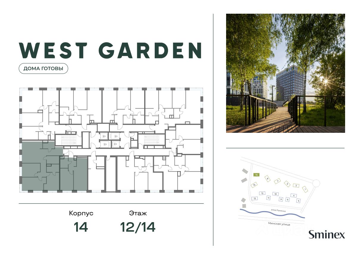 Комфортная и продуманная до мелочей 2-спальная квартира площадью 67.00 кв. м на 12 этаже в клубном доме 16. Увеличенная площадь окон и высота потолков 3.23 м дарят впечатляющие виды на парки, зеленые зоны и природные заказники. West Garden - это собрание клубных домов высотой 12-14 этажей в собственном парке 16 гектаров вдоль реки. Просторный среднеэтажный квартал расположен на Минской улице, в респектабельном Западном округе столицы. Вокруг премиальное окружение и более 1000 гектаров парков. West Garden - это возможность обеспечить себе и своей семье лучшие условия для жизни в одном из самых привлекательных и зелёных районов столицы. Гармония природы дополнена здесь впечатляющими возможностями и привилегиями: • Расположение в зелёном Западном районе столицы вблизи центра и ключевых магистралей в окружении парковых зон (заказник ''Долина реки Сетунь'', Мосфильмовский пруд, Ботанический сад МГУ, природный заказник ''Воробьёвы Горы'', Парк Победы на Поклонной горе) • Современная лаконичная архитектура, у каждого дома свой индивидуальный облик и выразительный фасад с использованием натуральных и долговечных материалов (гранит, известняк, клинкерный кирпич) • Функциональные лобби с отделкой из дерева и натурального камня с высокими потолками до 7,8 м • Самый большой собственный парк для прогулок и отдыха: 8 га собственной закрытой и благоустроенной территории, а также 8 га прилегающего парка на набережной с зонами отдыха с шезлонгами, маршрутами для бега, пеших и велосипедных прогулок • Инфраструктурный центр Clubhouse только для жителей: клубная гостиная с террасой и творческой атмосферой по фирменному стандарту Friend's Lab, детская игровая зона 300 кв. м по стандарту Kid's Lab • Насыщенная и разнообразная инфраструктура для детей любого возраста: 8 развивающих детских площадок в парке, 3 детские площадки на благоустроенной набережной, площадка для отдыха и досуга подростков • Спортивная инфраструктура по стандарту Fit Lab: многофункциональные площадки для футбола, баскетбола, волейбола с трибуной для болельщиков, зона воркаута, теннисные столы, зона для йоги, беговая дорожка 3 километра, фитнес-центр только для жителей • Комфортный и просторный подземный паркинг на 1313 машино-мест, 482 келлера, автомойка только для жителей на четыре поста