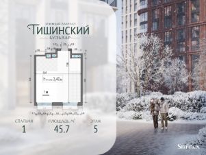 В продаже 1-комнатная квартира квартира в элитном квартале ''Тишинский бульвар''.Общая площадь квартиры - 45.70 кв.м. Этаж 3 из 14.Корпус К4С1.''Тишинский бульвар'' - тихий зелёный элитный квартал на Тишинке, в престижном и комфортном районе центра Москвы. В нём создан уникальный для элитного дома прогулочный бульвар в своём огромном парке 1,9 га. В парке оборудованы зоны для активного и тихого отдыха, крытые галереи, приватные зелёные комнаты, многофункциональная спортивная площадка, воркаут-зона, детская площадка, сухой фонтан, ручей.В пешей доступности Римско-католический кафедральный собор. Всего в полутора километрах от квартала находятся Патриаршие пруды - излюбленное место для летних прогулок, воскресных бранчей и романтических ужинов. Белая площадь расположена ещё ближе - на расстоянии 1,2 километра. Это точка концентрации деловой жизни и модных ресторанов.В ''Тишинский бульваре'' только для жителей и их гостей создан уникальный для элитного дома прогулочный бульвар в собственном огромном парке площадью 2,1 га, который занимает 70% территории квартала. Бульвар проходит через весь квартал и объединяет в общее пространство три двора: Кленовый, Рябиновый и Ивовый.В парке созданы крытые галереи и приватные зелёные комнаты для отдыха и медитаций в любую погоду. Насыщенное озеленение многолетними растениями с разными периодами цветения сохраняет территорию квартала красивой круглый год.В квартале насыщенная инфраструктура только для жителей, включая Clubhouse. Здесь оборудованы пространства для здорового образа жизни по стандарту FIT LAB: в парке - многофункциональная спортивная площадка, воркаут-зона, место для занятий йогой и медитации, бесплатный фитнес-клуб с бассейном. Для маленьких жителей доступны детская площадка и игровая комната по стандарту KIDS LAB.Дома оснащены самыми полными и лучшими системами.