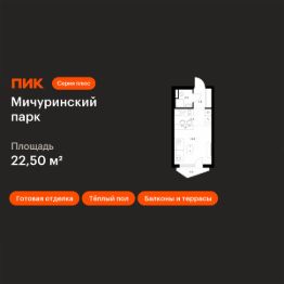 Продаётся квартира-студия площадью 22,5 кв.м на 2 этаже 24 этажного дома (Корпус 4.2, Секция 1) проекта ПИК Мичуринский парк. Светлый просторный подъезд на уровне земли, функциональная планировка, большие окна, c отделкой. ''Мичуринский парк'' расположен на западе Москвы, в районе Очаково-Матвеевское, в 7 минутах пешком от метро ''Озёрная''.Архитектурную концепцию корпусов 4.4 и 4.5 разработала российская студия KK ARCHSTUDIO. У каждого корпуса свой характер — его формируют уникальная форма зданий и пластика фасада. Динамичные складки эркеров образуют характерный геометрический рисунок, который поддерживают и дополняют архитектурные детали.В корпусах 4.4 и 4.5 открытые балконы разнообразных форм: прямоугольные, фигурные. Все балконы выходят в тихий внутренний двор-парк. В эркерной части обоих корпусов предусмотрены лоджии.У подъездов будет два выхода: на улицу и во двор-парк. В наших дворах мы установим столы и лавочки со встроенными зарядными устройствами. Не нужно будет возвращаться домой, чтобы зарядить смартфон или ноутбук: можно весь день работать на свежем воздухе.В лобби ''Мичуринского парка'' будет удобная зона ожидания, где можно встретить друзей, курьера или дождаться такси, а также гостевая туалетная комната со столиком для пеленания.На территории проекта предусмотрен подземный паркинг и кладовые с надежной системой вентиляции, пожаротушения и системой круглосуточного видеонаблюдения.Собственная инфраструктура проекта включает два детских сада и две школы. Также по соседству с жилым комплексом будет построен многофункциональный торгово-офисный комплекс Lakes. Вдоль всего ''Мичуринского парка'' будут проходить несколько пешеходных бульваров с местами для отдыха.Рядом с проектом несколько зелёных зон, которые прекрасно подойдут для отдыха и спорта на свежем воздухе. Жители ''Мичуринского парка'' смогут выбирать, куда отправиться на прогулку: в пешей доступности Очаковский парк, парк Школьников и парк Олимпийской деревни, а на автомобиле можно быстро добраться до Тропарёвского лесопарка и Мещерского парка.Вблизи ''Мичуринского парка'' расположены ведущие вузы: МИРЭА, МГИМО, РАНХиГС, Институт радиотехники и телекоммуникационных систем и Академия ФСБ. Артикул 983577 (Застройщик ООО ''СПЕЦИАЛИЗИРОВАННЫЙ ЗАСТРОЙЩИК ''ОЗЁРНАЯ 44'')