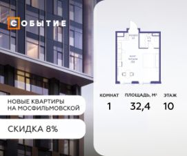 Около 10 минут до Москва Сити и ТТК! В продаже 1-к квартира от застройщика. Общая площадь 38.8, жилая 16, кухня 22.8. Квартира расположена на 26 этаже жилого квартала ''Событие-6'', корпус 2, Секция Секция 5. Квартира без отделки. Срок сдачи: 4 кв. 2029 года. СОБЫТИЕ.6 — финальный дом парк квартала СОБЫТИЕ на Мосфильмовской, созданный для тех, кто хочет ''заняться жизнью'' здесь и сейчас и получать максимум от каждого дня. Стильная архитектура, продуманное благоустройство и богатый набор общественных пространств делают дом естественной сценой для ярких личных событий. Архитектура от бюро Atrium на базе дизайн кода британских LDA Design и UHA London. Лучшая новостройка страны 2025 года! Расположение: • Около 710 минут пешком до станций метро ''Аминьевская'' и ''Мичуринский проспект'' (в зависимости от маршрута) • Около 15 минут до Садового кольца • Около 25 минут до аэропорта Внуково • Рядом — ключевые магистрали (Кутузовский, Мичуринский, Ломоносовский проспекты, Аминьевское шоссе), что упрощает выезды как в центр, так и за город Инфраструктура ''всё у дома'' Главный центр притяжения — модный парк ''Событие'' от бюро Wowhaus. Благоустроенный бульвар и рекреационные зоны занимают около половины территории квартала, а природная часть парка площадью более 12 гектаров уже открыта. В парке проложены: • примерно 1,5 км беговых дорожек • около 2,7 км велодорожек • около 1,6 км экотропы • детские и спортивные площадки, места для пикника, лекторий, декоративный огород, восстановленные биотопы • Парк ''Событие'' — финалист конкурса Правительства Москвы в номинации ''Строительство парков и общественных пространств'' Мультидвор Двор СОБЫТИЯ.6 — это мультимодальное пространство для жителей всех возрастов. Здесь предусмотрены: • игровые и развивающие площадки для малышей и детей постарше • воркаут зоны, площадки для игр с мячом и йоги для активных взрослых • мини бульвар с фонтаном для прогулок • террасы, амфитеатры и лаунжи для спокойного отдыха и встреч • Комьюнити террасы и общественные пространства на кровле 10 этажа Внутри дома предусмотрен полный набор общественных пространств: • детская игровая комната и детский клуб • спортрум / фитнес рум • коворкинг и комнаты для занятий с репетитором • дизайнерские лаунж зоны для деловых и личных встреч Район и окружение: парки, университеты, спорт Район относится к числу самых экологичных в Москве: он буквально утопает в зелени парков и заповедников. В окружении — парк ''Событие'', природный заказник ''Долина реки Раменки'', Воробьевы горы, Матвеевский лес, парк 50 летия Октября, парк Олимпийской деревни, Вороновский парк, набережные Москвы реки, заказник ''Долина реки Сетунь''. Это настоящая ''интеллектуальная миля'' Москвы: рядом МГУ имени М. В. Ломоносова, ботанический сад МГУ, театр им. Н. И. Сац, Новодевичий монастырь, стадион ''Лужники'', Парк Победы и другие знаковые объекты. Район особенно комфортен для сторонников ЗОЖ: множество мест для бега, велопрогулок, спорта на открытом воздухе и з