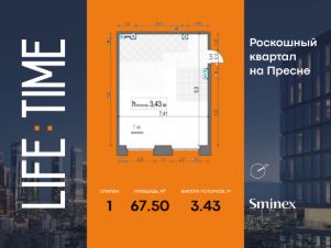 Квартира с одной спальней, обращённая окнами в зелёный благоустроенный двор-парк. Продуманная планировка позволяет разместить кухню-гостиную и спальню с санузлом и гардеробной.Life Time - роскошный современный квартал на Пресне, в наиболее быстро растущем премиальном районе ЦАО.Его насыщенная инфраструктура и выгодное расположение дарят время для жизни. Вы больше не тратите его на дорогу или ожидание, при этом ни в чём себе не отказывая.На территории предусмотрено всё для комфортной жизни:• двор-парк площадью 1,8 гектара с прудом и фонтанами,• Clubhouse - инфраструктурный центр в отдельном здании с исчерпывающими возможностями для спорта, отдыха и досуга только для жителей,• спортивная инфраструктура на улице и в помещении, в том числе бассейн длиной 25 метров, хот-таб, хаммам, сауна, бьюти-зона,• клубная гостиная с террасой,• всё для развития и досуга детей любого возраста, в том числе детский сад и школа.Life Time находится в центре сложившегося премиального района, в окружении многочисленных парков. Удобная транспортная доступность и прямой выезд на Звенигородское шоссе позволяют без проблем добраться до Садового кольца и Москва-Сити.Архитектурный стиль квартала - роскошный минимализм. Дома десятилетиями будут выглядеть современно.