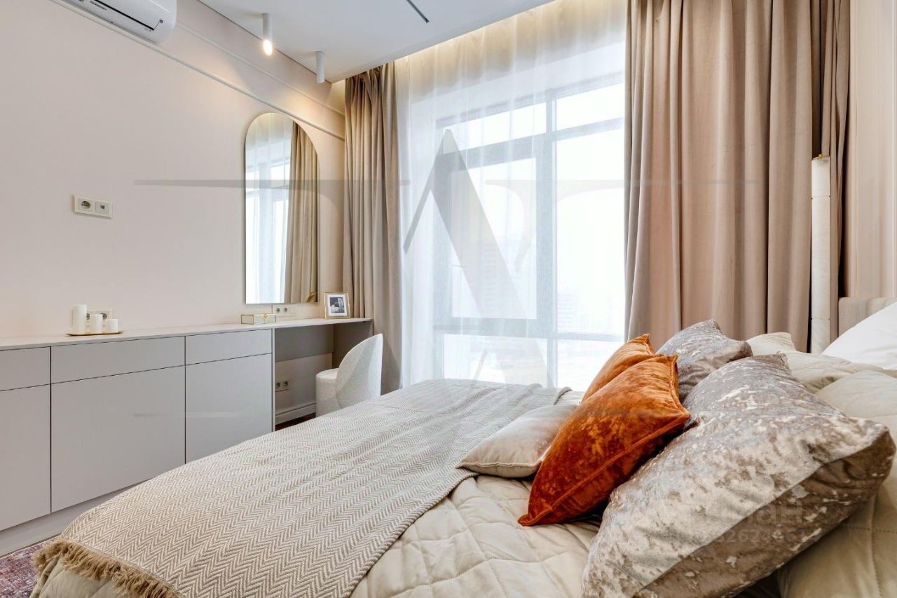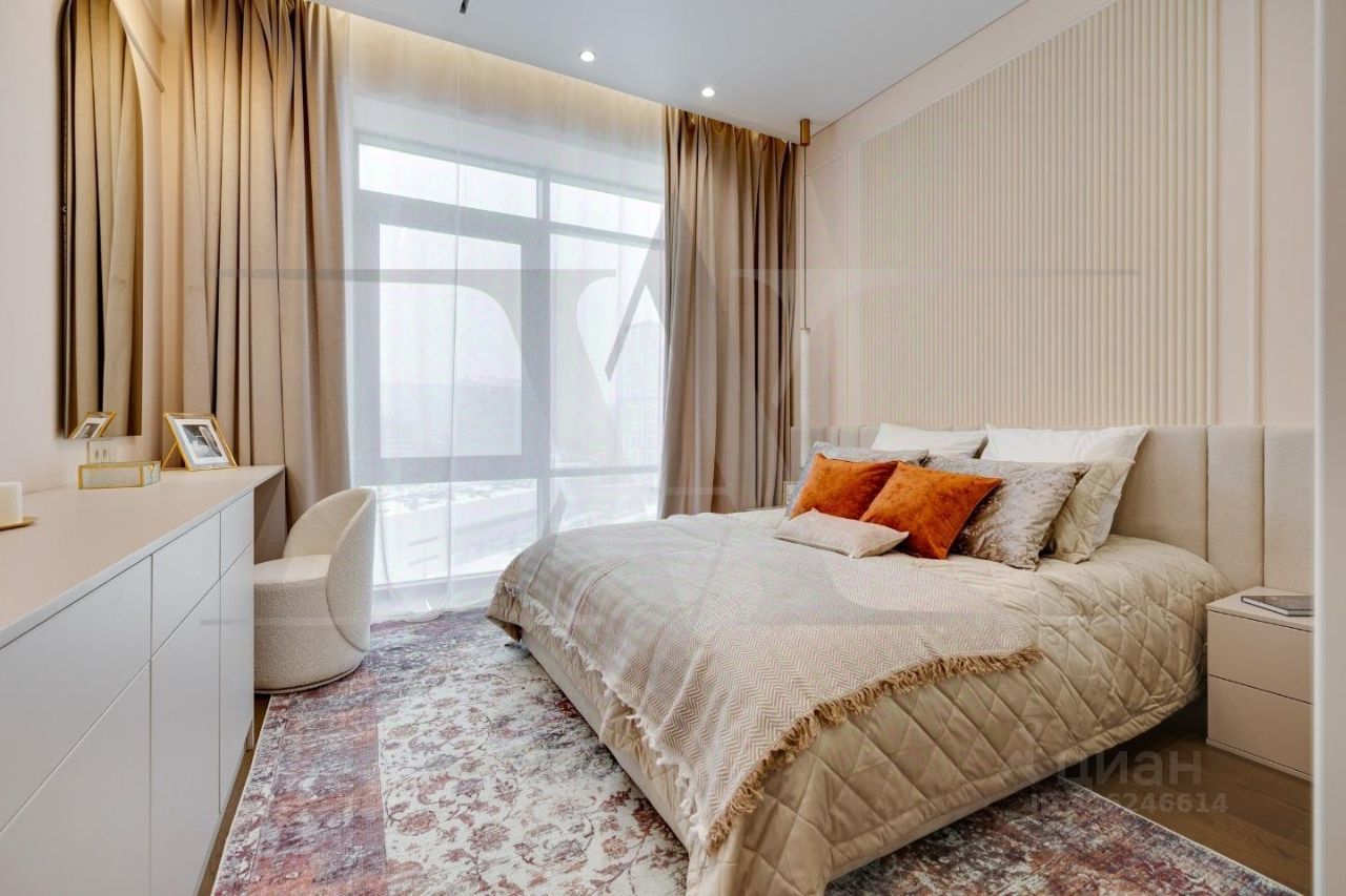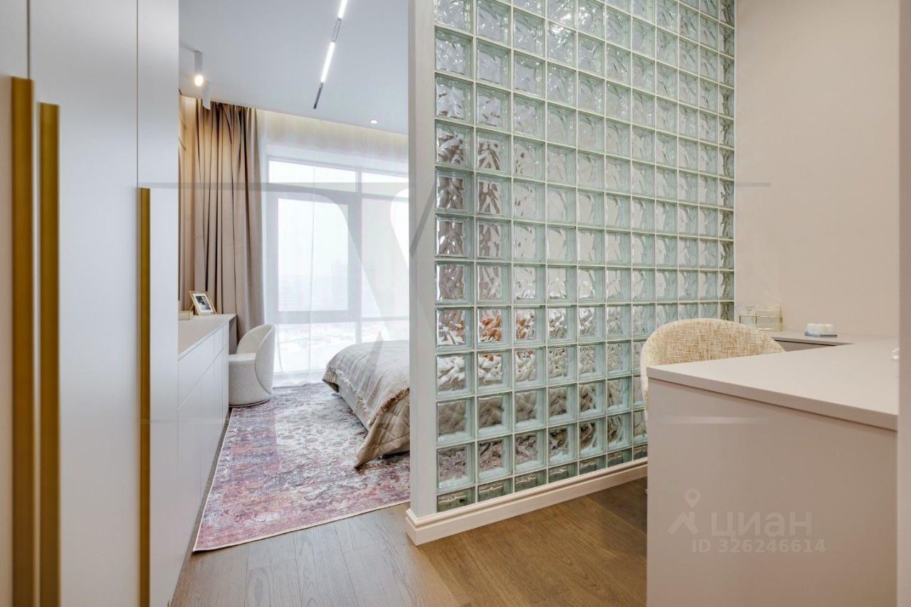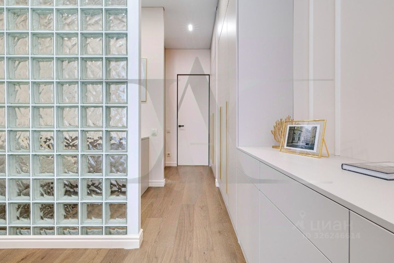 Делюкс в Хамовниках - самая выгодная цена за исключительное качество . Описание квартиры: На фоне сдержанной бело-песочной палитры изумрудный диван спинкой чертит мягкую дугу и собирает вокруг себя разговоры и взгляды. Терракотовые барные стулья у острова — тёплые акценты закатного песка, на них приятно задержаться с бокалом, наблюдая, как хрустальные подвесы рассыпают свет, будто крупную морскую соль. Кухня — вежливый шёпот Дубая: филигранные радиусы, латунные линии, гладкий камень. В нише с мягко закруглёнными углами прячется техника, а рельеф острова и тёплый орех задают тактильный ритм. Дубовый паркет, уложенный английской ёлочкой, неслышно ведёт из зоны кулинарных ритуалов в гостиную — туда, где на стенах классические пилястры держат тонкую грань между традицией и новизной. Мастер-спальня дышит бежевыми туманами. Кровать будто парит над полом, геометрия гарнитура вписана в единую линию, а латунный светильник расставляет точки над и. Настенная панель с тонкими световыми швами ведёт взгляд, не повышая голос. Элегантное трюмо выслушает все ваши секретики. Ванная — прохлада камня и штрих малахита: рифлёная тумба глубокого зелёного оттенка, двойные зеркала с мягкой подсветкой и тёплая латунь сантехники. Рисунок плитки мерно повторяет тему округлостей тактично следуя общей тональности интерьеров. Квартира, в которой форма становится манерой говорить, а каждый день — поводом остаться подольше. Здесь книги читаются глубже, а паузы между словами становятся вкуснее. Главное о квартире: третий этаж, 100 квадратных метров, мастер-блок, вторая спальня, гостевой санузел. Высота потолков три метра. Виды из окон в направлении променада . Квартира оборудована брендовой мебелью последних коллекций от итальянских производителей, и техникой премиального сегмента . Предусмотрена приточно-вытяжная система вентиляции с климат-контролем ,фильтрация воды до уровня питьевой. Элементы умного дома: электропривод штор, множество сценариев освещения. Новый премиальный ремонт, первичная продажа - никто не жил. Эксклюзивно в Whitewill