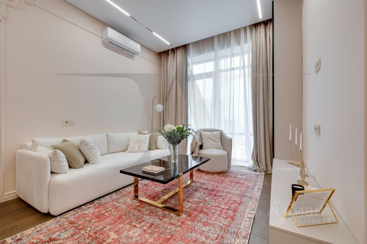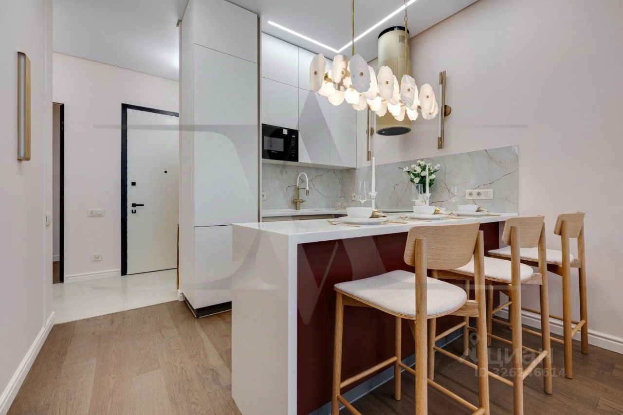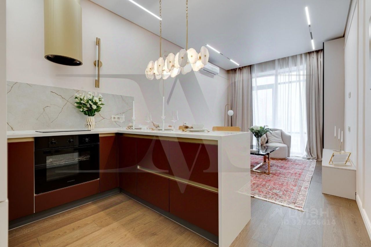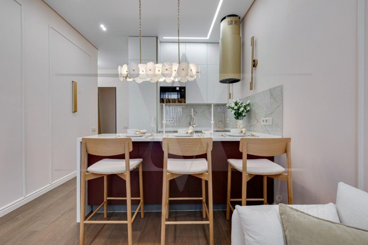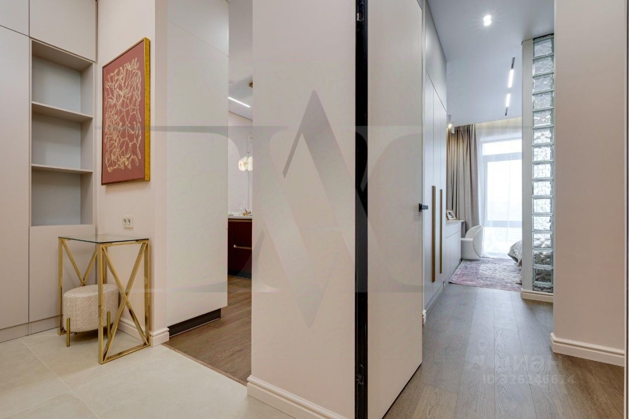 Делюкс в Хамовниках - самая выгодная цена за исключительное качество . Описание квартиры: На фоне сдержанной бело-песочной палитры изумрудный диван спинкой чертит мягкую дугу и собирает вокруг себя разговоры и взгляды. Терракотовые барные стулья у острова — тёплые акценты закатного песка, на них приятно задержаться с бокалом, наблюдая, как хрустальные подвесы рассыпают свет, будто крупную морскую соль. Кухня — вежливый шёпот Дубая: филигранные радиусы, латунные линии, гладкий камень. В нише с мягко закруглёнными углами прячется техника, а рельеф острова и тёплый орех задают тактильный ритм. Дубовый паркет, уложенный английской ёлочкой, неслышно ведёт из зоны кулинарных ритуалов в гостиную — туда, где на стенах классические пилястры держат тонкую грань между традицией и новизной. Мастер-спальня дышит бежевыми туманами. Кровать будто парит над полом, геометрия гарнитура вписана в единую линию, а латунный светильник расставляет точки над и. Настенная панель с тонкими световыми швами ведёт взгляд, не повышая голос. Элегантное трюмо выслушает все ваши секретики. Ванная — прохлада камня и штрих малахита: рифлёная тумба глубокого зелёного оттенка, двойные зеркала с мягкой подсветкой и тёплая латунь сантехники. Рисунок плитки мерно повторяет тему округлостей тактично следуя общей тональности интерьеров. Квартира, в которой форма становится манерой говорить, а каждый день — поводом остаться подольше. Здесь книги читаются глубже, а паузы между словами становятся вкуснее. Главное о квартире: третий этаж, 100 квадратных метров, мастер-блок, вторая спальня, гостевой санузел. Высота потолков три метра. Виды из окон в направлении променада . Квартира оборудована брендовой мебелью последних коллекций от итальянских производителей, и техникой премиального сегмента . Предусмотрена приточно-вытяжная система вентиляции с климат-контролем ,фильтрация воды до уровня питьевой. Элементы умного дома: электропривод штор, множество сценариев освещения. Новый премиальный ремонт, первичная продажа - никто не жил. Эксклюзивно в Whitewill
