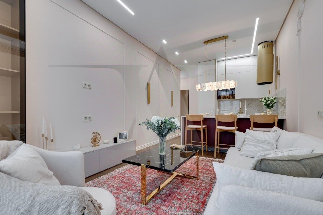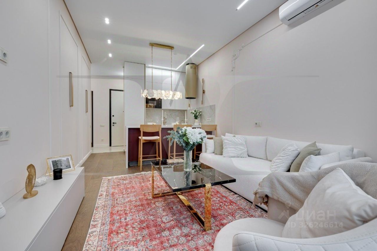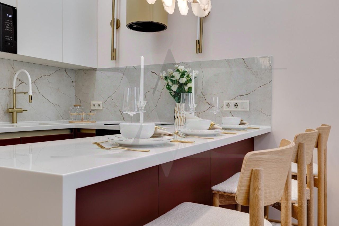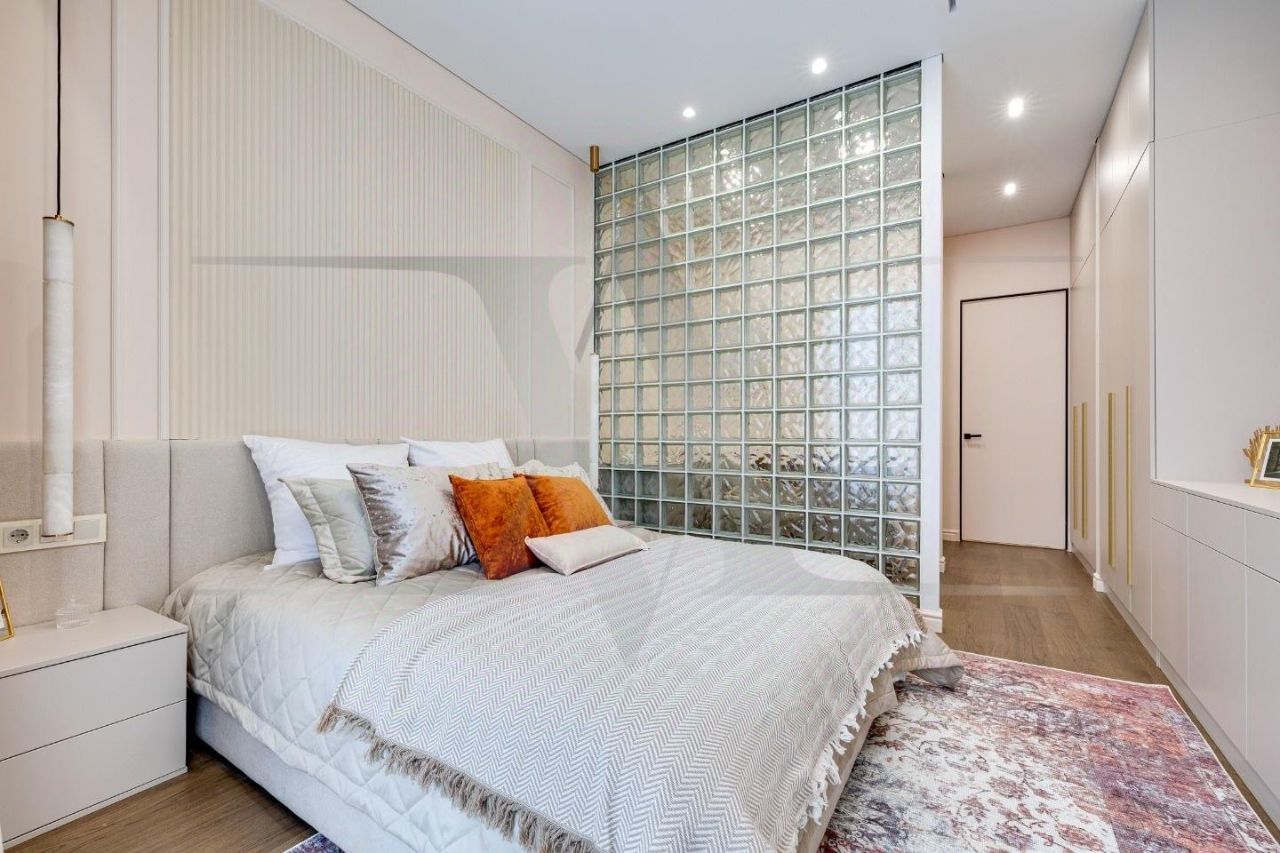 Делюкс в Хамовниках - самая выгодная цена за исключительное качество . Описание квартиры: На фоне сдержанной бело-песочной палитры изумрудный диван спинкой чертит мягкую дугу и собирает вокруг себя разговоры и взгляды. Терракотовые барные стулья у острова — тёплые акценты закатного песка, на них приятно задержаться с бокалом, наблюдая, как хрустальные подвесы рассыпают свет, будто крупную морскую соль. Кухня — вежливый шёпот Дубая: филигранные радиусы, латунные линии, гладкий камень. В нише с мягко закруглёнными углами прячется техника, а рельеф острова и тёплый орех задают тактильный ритм. Дубовый паркет, уложенный английской ёлочкой, неслышно ведёт из зоны кулинарных ритуалов в гостиную — туда, где на стенах классические пилястры держат тонкую грань между традицией и новизной. Мастер-спальня дышит бежевыми туманами. Кровать будто парит над полом, геометрия гарнитура вписана в единую линию, а латунный светильник расставляет точки над и. Настенная панель с тонкими световыми швами ведёт взгляд, не повышая голос. Элегантное трюмо выслушает все ваши секретики. Ванная — прохлада камня и штрих малахита: рифлёная тумба глубокого зелёного оттенка, двойные зеркала с мягкой подсветкой и тёплая латунь сантехники. Рисунок плитки мерно повторяет тему округлостей тактично следуя общей тональности интерьеров. Квартира, в которой форма становится манерой говорить, а каждый день — поводом остаться подольше. Здесь книги читаются глубже, а паузы между словами становятся вкуснее. Главное о квартире: третий этаж, 100 квадратных метров, мастер-блок, вторая спальня, гостевой санузел. Высота потолков три метра. Виды из окон в направлении променада . Квартира оборудована брендовой мебелью последних коллекций от итальянских производителей, и техникой премиального сегмента . Предусмотрена приточно-вытяжная система вентиляции с климат-контролем ,фильтрация воды до уровня питьевой. Элементы умного дома: электропривод штор, множество сценариев освещения. Новый премиальный ремонт, первичная продажа - никто не жил. Эксклюзивно в Whitewill