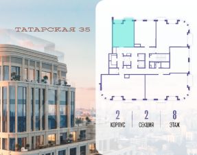 Продается просторная квартира площадью 54.90 м2 в жилом комплексе ТАТАРСКАЯ, 35. Квартира находится в 2 секции корпуса 2. Этаж 8-й из 19.Квартира без чистовой отделки, с просторной кухней 17.30 м2. Жилая площадь 14.80 м2. Высота потолка от 3.50.ТАТАРСКАЯ, 35 - новая архитектурная доминанта Замоскворечья, достопримечательность на фотопанорамах исторического центра Москвы. Элитный дом, созданный для тех, кто умеет смотреть далеко вперед, мыслить масштабно и воплощать собственный сценарий жизни.Вдохновляющие прогулки по променаду набережной, в уютных переулках, в парке ''Зарядье'', в Михайловском саду и Репинском сквере. Наслаждение высоким искусством в Третьяковской галерее, Доме Музыки, театральном музее им. А.А. Бахрушина, театре на Малой Ордынке. За окнами - Кремль, высотка на Котельнической, панорамы Замоскворечья и острова Балчуг, огни Садового кольца.Собственные спорт-румы, детская, репетиторская, бьюти-пространства, деловое пространство с коворкингом, переговорной и сигарной. Собственный трехуровневый фитнесс-центр с бассейном, тренажерным залом, сауной, хаммамом, массажным кабинетом. Площадь двора - 1,8 га, половина территории покрыта деревьями, кустарниками и лужайками.Дом расположен внутри Садового кольца - отсюда в считанные минуты можно добраться до важнейших мест столицы: достопримечательностей и парков, театров и ресторанов, деловых и административных центров. 7 минут до Кремля на автомобиле, 15 минут до Третьяковской галереи и 8 минут до Садового кольца пешком.Планировочные решения и визуализации предварительны, возможны изменения.