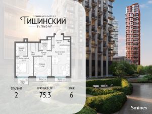 В продаже 2-комнатная квартира квартира в элитном квартале ''Тишинский бульвар''.Общая площадь квартиры - 75.30 кв.м. Этаж 6 из 9.Корпус Кленовый 3.''Тишинский бульвар'' - тихий зелёный элитный квартал на Тишинке, в престижном и комфортном районе центра Москвы. В нём создан уникальный для элитного дома прогулочный бульвар в своём огромном парке 1,9 га. В парке оборудованы зоны для активного и тихого отдыха, крытые галереи, приватные зелёные комнаты, многофункциональная спортивная площадка, воркаут-зона, детская площадка, сухой фонтан, ручей.В пешей доступности Римско-католический кафедральный собор. Всего в полутора километрах от квартала находятся Патриаршие пруды - излюбленное место для летних прогулок, воскресных бранчей и романтических ужинов. Белая площадь расположена ещё ближе - на расстоянии 1,2 километра. Это точка концентрации деловой жизни и модных ресторанов.В ''Тишинский бульваре'' только для жителей и их гостей создан уникальный для элитного дома прогулочный бульвар в собственном огромном парке площадью 2,1 га, который занимает 70% территории квартала. Бульвар проходит через весь квартал и объединяет в общее пространство три двора: Кленовый, Рябиновый и Ивовый.В парке созданы крытые галереи и приватные зелёные комнаты для отдыха и медитаций в любую погоду. Насыщенное озеленение многолетними растениями с разными периодами цветения сохраняет территорию квартала красивой круглый год.В квартале насыщенная инфраструктура только для жителей, включая Clubhouse. Здесь оборудованы пространства для здорового образа жизни по стандарту FIT LAB: в парке - многофункциональная спортивная площадка, воркаут-зона, место для занятий йогой и медитации, бесплатный фитнес-клуб с бассейном. Для маленьких жителей доступны детская площадка и игровая комната по стандарту KIDS LAB.Дома оснащены самыми полными и лучшими системами.