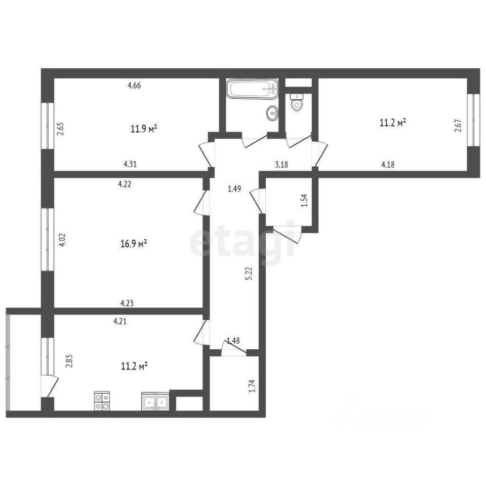 56 м² · Этаж 4 из 9