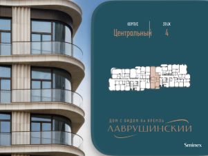 Просторная светлая квартира площадью 82.8 кв. м. Кухня-гостиная обращена окнами в сторону Марфо-Мариинской обители, панорамные окна улучшают видовые характеристики квартиры. Продуманная планировка позволяет разместить две приватные спальные комнаты с отдельными гардеробными и санузлами.''Лаврушинский'' - бескомпромиссный дом с лучшими видами на Кремль. Благодаря расположению всего в одном километре от Кремля, своей высоте и малоэтажной окружающей застройке, из квартир открываются поразительные прямые виды на главные достопримечательности центра Москвы, включая храм Христа Спасителя и собор Василия Блаженного. Расположение в глубине квартала, посередине парка, дает удивительное для центра ощущение тишины и простора.На закрытой территории находится самый большой на элитном рынке собственный ландшафтный парк площадью 1,4 га с фонтаном, ручьём, зонами для воркаута и тихого отдыха. KIDS LAB: развивающая детская площадка на улице и игровая комната в помещении. FIT LAB: фитнес-клуб с 25-метровым бассейном, beauty room, доступные только для жителей.В проекте уникальный выбор квартир с просторными балконами, пентхаусов с террасами, бассейнами и каминами, максимальными видовыми характеристиками, а также роскошных вилл. Всего - 153 квартиры и 101 продуманное планировочное решение. Высота потолков составляет от 3,5 до 8,25 м. В доме предусмотрен 2х-уровневый паркинг на 279 машино-места.В доме предусмотрен полный комплекс систем комфорта, включающий приточно-вытяжную вентиляцию с тонкой фильтрацией с принципом забора воздуха с высоты 50 метров для повышения продолжительности жизни, отдельный сервисный лифт для обслуживающего персонала и другие современные системы.