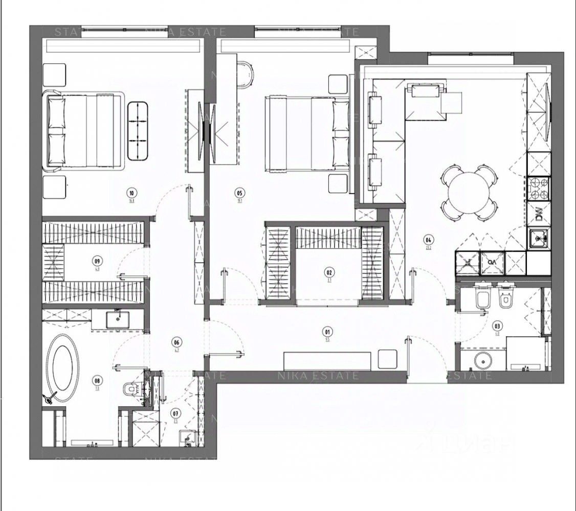 Просторная квартира площадью 155 м² в квартале бизнес-класса ''Остров'' на берегу Москвы-реки. Квартира без отделки расположена на шестом этаже в корпусе 3. Возможно спланировать кухню-гостиную, до четырех спален, санузлы, гардеробные и холл. Окна ориентированы на три стороны, открываются виды на Navka центр и СК ''Арсенал'', во внутренний двор. Один собственник. Полная стоимость в договоре, без залога. Главное о доме. ''Остров'' — квартал от ''Донстроя'' на 40 гектарах Мнёвниковской поймы. Здесь 39 корпусов переменной этажности, часть выходит на первую линию Москвы-реки. Панорамные окна открывают виды на Гребной канал и зелёные холмы Крылатского. Концепция all inclusive превращает комплекс в город внутри города: Центральный парк, набережные, кафе и рестораны, торговый центр, детские сады и школы. Дворы оформлены тематически: луговой, водный, ландшафтный с ручьём или с амфитеатром. В каждом — спортивные и детские площадки, тихие лаунж-зоны, 5G и зарядки для гаджетов. Главное о локации. Комплекс расположен в Хорошёво-Мнёвниках, на берегу Москвы-реки. Через реку — парк ''Крылатские холмы'' с велосипедными трассами и Гребной канал с бассейном и спортивными залами. В десяти минутах — Москворецкий дендропарк и Тереховский пруд для прогулок и пикников. Для семей рядом школа 1517, лицей 1560 и детский сад ''Разные детки''. За 15 минут на машине можно доехать до ТТК и Москва-Сити, а пешком дойти до метро ''Терехово'' за 10 минут. Таким образом, район совмещает жизнь у воды, доступ к зелёным массивам и быструю связь с центром. Комментарий эксперта. Меня зовут Алексей Кригер — брокер компании Whitewill. Я отвечаю за продажу этого лота. Свяжитесь со мной, чтобы получить расширенную презентацию, больше фотографий или договориться о просмотре. Могу провести экскурсию по локации и познакомить вас с этим домом. ID 303 915.