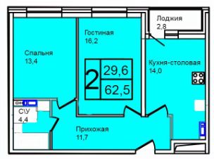 2-к квартира Показать на карте