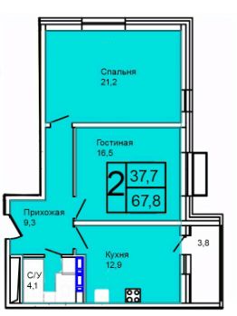 Продаётся 2-комнатная квартира в строящемся доме (Корпус 3), срок сдачи: IV-кв. 2027, общей площадью 76.3 кв.м., на 4 этаже.