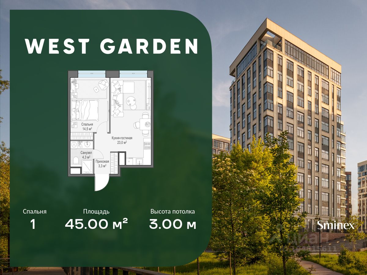 Комфортная и продуманная до мелочей 2-спальная квартира площадью 69.00 кв. м на 12 этаже в клубном доме 14. Увеличенная площадь окон и высота потолков 3.00 м дарят впечатляющие виды на парки, зеленые зоны и природные заказники. West Garden - это собрание клубных домов высотой 12-14 этажей в собственном парке 16 гектаров вдоль реки. Просторный среднеэтажный квартал расположен на Минской улице, в респектабельном Западном округе столицы. Вокруг премиальное окружение и более 1000 гектаров парков. West Garden - это возможность обеспечить себе и своей семье лучшие условия для жизни в одном из самых привлекательных и зелёных районов столицы. Гармония природы дополнена здесь впечатляющими возможностями и привилегиями: • Расположение в зелёном Западном районе столицы вблизи центра и ключевых магистралей в окружении парковых зон (заказник ''Долина реки Сетунь'', Мосфильмовский пруд, Ботанический сад МГУ, природный заказник ''Воробьёвы Горы'', Парк Победы на Поклонной горе) • Современная лаконичная архитектура, у каждого дома свой индивидуальный облик и выразительный фасад с использованием натуральных и долговечных материалов (гранит, известняк, клинкерный кирпич) • Функциональные лобби с отделкой из дерева и натурального камня с высокими потолками до 7,8 м • Самый большой собственный парк для прогулок и отдыха: 8 га собственной закрытой и благоустроенной территории, а также 8 га прилегающего парка на набережной с зонами отдыха с шезлонгами, маршрутами для бега, пеших и велосипедных прогулок • Инфраструктурный центр Clubhouse только для жителей: клубная гостиная с террасой и творческой атмосферой по фирменному стандарту Friend's Lab, детская игровая зона 300 кв. м по стандарту Kid's Lab • Насыщенная и разнообразная инфраструктура для детей любого возраста: 8 развивающих детских площадок в парке, 3 детские площадки на благоустроенной набережной, площадка для отдыха и досуга подростков • Спортивная инфраструктура по стандарту Fit Lab: многофункциональные площадки для футбола, баскетбола, волейбола с трибуной для болельщиков, зона воркаута, теннисные столы, зона для йоги, беговая дорожка 3 километра, фитнес-центр только для жителей • Комфортный и просторный подземный паркинг на 1313 машино-мест, 482 келлера, автомойка только для жителей на четыре поста