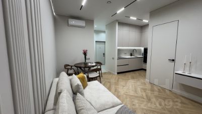Продается шикарная Евро 2-комнатная квартира с дизайнерским ремонтом на 33 этаже 51 этажного дома бизнес- класса ЖК Хедлайнер. КВАРТИРА УНИКАЛЬНАЯ:1. Видовая, с открытым живописным видом на Москву-реку, окна выходят во двор2. Большой метраж 46,2 кв.м, высокие потолки - 2,9 м (после чистовой отделки)3. Уникальная планировка квартиры: Кухня-гостиная 20 кв.м, из которых гостиная - 15 кв.м и ниша для кухни - 5 кв.м, спальня - 10 кв.м, Квартира с двумя гардеробными комнатами : в прихожей -3,2 кв.м, в спальне - 2,9 кв.м , Совмещенный санузел - 4,6 кв.м, холл 4,2 кв.м Квартира впечатляет своей стильной и функциональной обстановкой, все продумано до мелочей и сделано на уровне бизнес-класса:•Большая кухня до потолка со столешницей из кварца, укомплектована встроенной техникой Gorenje (производство Европа): холодильник, духовой шкаф, микроволновая печь, посудомоечная машина, индукционная варочная панель, вытяжка, мойка Omoikiri, смеситель для проточной и питьевой воды, диспенсер. Продумано место для установки кофемашины, электрочайника, измельчителя для пищевых отходов•Стильные стальные радиаторы отопления KZTO•Межкомнатные двери скрытого монтажа высотой 2,3 м•Кварцевые подоконники, кварцевые столешницы на рабочем столе кухни, на тумбе в ванной комнате•Подвесные тумбы с модными закруглениями и со столешницами из кварца•Большой диван 240*120 и кровать выполнены на заказ в одинаковой ткани высокой категории•Стол из массива карагача, мягкие стулья из ясеня•Огромные зеркала до потолка (с подсветкой) в спальне, в прихожей, в ванной •Гардеробная в спальне укомплектована выдвижными ящиками, штангами и полками для хранения одежды•Гардеробная в прихожей продается без мебели, чтобы была возможность у покупателя укомплектовать её полками и системами хранения под себя•Разные сценарии освещения: мастер-свет, проходные выключатели, встроенные трековые светильники, подсветка, подвесные потолочные светильники, светильники втяжка•Разводка воды, инженерия Rehau, датчики протечки Neptun, проточный водонагреватель, тёплый пол в коридоре, санузле и гардеробной•2 кондиционера•Встроенный шкаф для стиральной и сушильной машин•Квартира оборудована системой умный дом: голосовое управление шторами, светом, теплым полом и т. д. Дом монолитный, сдан в 2024 году, расположен в Пресненском районе ЦАО, всего в 10 мин/пеш от Москва Сити и в 2 мин/пеш от м. Шелепиха. Внутренний закрытый двор с детской площадкой и зонами отдыха, подземный паркинг, центральное лобби с консьержем. В шаговой доступности находятся школы, детские сады, клиники, магазины, кафе, фитнес-залы, магазин Перекресток находится прямо в доме и в 10 мин/пеш вся инфраструктура Москва-Сити.Квартира приобреталась без привлечения ипотечных средств, 2 взрослых собственника, полная стоимость в договоре, юридически и физически свободна, свободная продажа