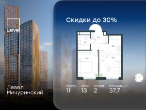 2-к, Левел Мичуринский ЖК, 11 Показать на карте