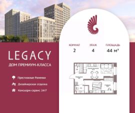 Продается двухкомнатная квартира общей площадью 50,4 м2 на 3 этаже дома премиум-класса Legacy в районе Раменки. Холл 5,5 м2 создает уют и комфорт с первых шагов. А правильно организованные встроенные системы хранения делают каждый квадратный метр холла продуманным и вместительным. Просторная кухня-гостиная 17,7 м2 для времяпровождения всей семьей за ужином, настольными играми или встреч с друзьями. Приватная спальная комната 15,1 м2, располагающая к отдыху и восстановлению сил. Для удобства будущих резидентов доступны два варианта отделки от застройщика: Premium и Elite премиальные материалы в отделке, мебель от европейских производителей, и освещение индивидуального изготовления. Жилой комплекс Legacy располагается на Мичуринском проспекте в районе с развитой инфраструктурой, богатой историей и высокой транспортной доступностью. Москва-река, Ботанический сад МГУ, главный корпус МГУ и Воробьевы горы на расстоянии прогулки от комплекса. Проект состоит из 9 секций переменной этажности от 8 до 17 этажей. В каждой секции не более 5 квартир на этаже, что обеспечивает высокий уровень приватности. Архитектура Проект Legacy разработан архитектурным бюро Speech. Его строгая лаконичность дополнена современными стандартами роскошной и комфортной жизни это бессменная классика, которая всегда вне моды. Благоустройство Свой приватный двор-сквер площадью 3 600 м2 с пространствами для всех возрастов: на территории располагаются игровые площадки, детский городок, песочница, воркаут-зоны, батуты, места для отдыха, лабиринты, настольный теннис и шахматные столы. Презентабельные лобби Дизайнерские лобби и холлы с премиальной отделкой. Изысканный стиль и высококачественные европейские материалы, отражающие высокий статус резидентов дома. Инфраструктура в доме Магазины, салон красоты, спортивная студия на первом этаже. А также ресторан Seasons, который позволяет разнообразить рацион и сделать каждый ужин особенным. Комфорт и безопасность Премиальный консьерж-сервис 24/7, круглосуточная охрана, видеонаблюдение, система СКУД, закрытый охраняемый паркинг и эксклюзивное мобильное приложение для решения бытовых вопросов резидентов.