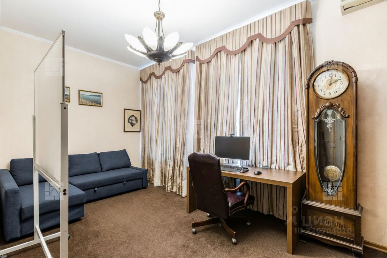 Лот: 115534. На продажу предлагается четырехкомнатная квартира, площадью 138,2 кв.м., в жилом комплексе премиум-класса Prime Park. Планировка: кухня-гостиная, спальня с санузлом, спальня с гардеробной и санузлом, кабинет, гостевой санузел, прихожая. Из панорамных окон открываются виды на Триумф-Палас и тихий внутренний двор комплекса. Для отделки использованы исключительно высококачественные материалы мирового уровня: на полу в жилых зонах уложена инженерная доска, в санузлах премиальный итальянский керамогранит, а в прихожей итальянская плитка. Стены декорированы уникальными ручными обоями ведущих европейских брендов Fresq, GEO.44, Arte, потолки представляют собой изящные подвесные конструкции с лепниной ручной работы. Интерьер в санузлах дополняют предметы сантехники от известных производителей Villeroy & Boch (Германия), Giulnig (Италия), Tres (Испания). Вся корпусная мебель, шкафы, стеновые панели и двери изготовлены индивидуально под заказ специально для данной квартиры. Для поддержания идеального микроклимата установлен современный климатический комплекс с фанкойлами производства японской компании DAIKON. Консьерж. Видеонаблюдение. Машиноместа в подземном паркинге по запросу. Удобная транспортная доступность и развитая инфраструктура района. Участник ассоциации AREA.