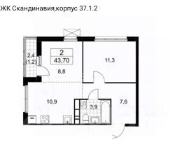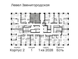 Цена указана с учётом скидки при 100%-й оплате, несубсидированной ипотеке, рассрочке (кроме программы ''Рассрочка 0%'').В жилом квартале продаётся 2-комнатная квартира площадью 37.10 кв.м без отделки. Квартира расположена на 39 этаже 64 этажного корпуса 2 в жилом комплексе комфорт класса Левел Звенигородская (компания Level Group/Левел групп). Отличная транспортная доступность- 5 мин. пешком до метро ''Звенигородская'' (откроется к окончанию строительства),- 18 мин. пешком до станции МЦК ''Хорошёво'' и станции БКЛ ''Народное ополчение'',- 4 мин. на авто до ТТК,- 8 мин. на авто до Садового кольца,- 15 мин. на авто до Кремля. Продуманный архитектурный проект- Концепция от студии Станислава Михаловского, в основу которой легло единение природы и города,- Двухкамерные стеклопакеты в окнах, алюминиевый и ПВХ профиль - в квартирах тепло зимой и прохладно летом,- С верхних этажей откроются панорамные виды на город, Москву-реку, ''Москва-Сити'' и Москворецкий парк,- Лобби со всеми удобствами: окна в пол, высокие потолки до 4,7 м, лаунж-зоны, колясочные, гостевые санузлы и мойки для лап животных,- Централизованные водонагреватели гарантируют круглогодичную подачу горячей воды в каждую квартиру. БлагоустройствоКонцепция благоустройства разработана совместно с бюро UNK landscape. Высота башен приближается к 200 метрам - они словно касаются неба. Небесный простор проецируется на территорию двора с помощью подсветки, визуально увеличивая пространство и отражаясь в авторских элементах архитектуры.На территории площадью 0,45 га расположатся:- ''Облако событий'' - место встреч и общения,- ''Облако спорта'' - всё для поддержания себя в форме,- ''Облако принятия решений'' - пространство для работы на свежем воздухе,- ''Облако спокойствия'' - для отдыха в тишине природы,- ''Облако игр'' - площадки для подростков и самых маленьких. ИнфраструктураВ жилом комплексе откроется 21 коммерческое помещение: продуктовые лавки, кафе, салоны красоты, службы доставки и творческие студии.Этап 1 включает строительство двухуровневого подземного паркинга. Всего здесь расположится 351 машино-место, включая семейные места, и 264 кладовых помещения.В распоряжении жителей развитая инфраструктура района: 15 супермаркетов, 5 спортивных объектов, 9 медучреждений, 7 детских садов, 4 школы, 3 благоустроенных парка - всё в шаговой доступности. ИнженерияКомфортное перемещение внутри домов будут обеспечивать надёжные лифты с доступом в паркинг с жилых этажей. В каждом корпусе предусмотрено до шести кабин, включая сервисные лифты.Попасть на территорию комплекса можно только по единому ключу доступа. Видеонаблюдение установлено на входах в подъезды, в лобби, в общих зонах, на въезде в паркинг. Гости смогут связаться с жителями дома через входные видеопанели, а управлять доступом на территорию можно через видеодомофон или приложение на телефоне.