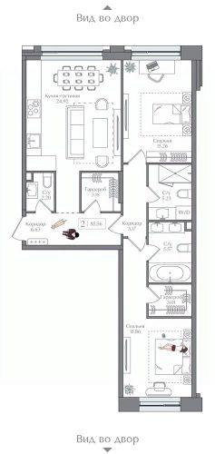 Продаётся 2-комнатная квартира в строящемся доме (Корпус 6 (II очередь)), срок сдачи: II-кв. 2027, общей площадью 85.56 кв.м., на 14 этаже. Жилой комплекс с подземной автостоянкой, отдельно стоящими ДОУ, БНК (учебный корпус) и многофункциональным центром.