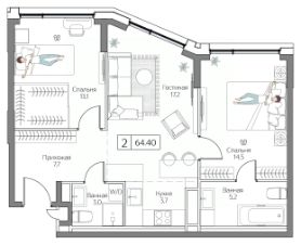 Продаётся 2-комнатная квартира в строящемся доме (Корпус 5 (II очередь)), срок сдачи: II-кв. 2027, общей площадью 65.9 кв.м., на 14 этаже. Жилой комплекс с подземной автостоянкой, отдельно стоящими ДОУ, БНК (учебный корпус) и многофункциональным центром.