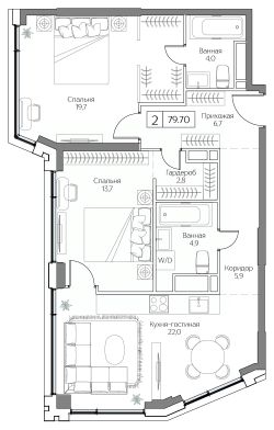 Продаётся 2-комнатная квартира в сданном доме (Корпус 3 (I очередь)), срок сдачи: II-кв. 2025, общей площадью 79.42 кв.м., на 13 этаже. Жилой комплекс с подземной автостоянкой, отдельно стоящими ДОУ, БНК (учебный корпус) и многофункциональным центром.