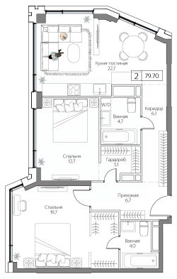 Продается УЮТНАЯ и СВЕТЛАЯ квартира!Обременений нет, документы готовы к сделке. Удачная планировка, огромная кухня-гостиная, мастер-спальня, вторая спальня/кабинет/гостевая.Два санузла.Виды из окна ничем не перекроют.Качественный консьерж-сервис, теплый подземный паркинг с зарядкой для электромобилей, оборудованы террасы на крыше, летный кинотеатр, современное пространство для спорта и отдыхаРазвитое окружение и транспортная доступность, продуктовые магазины, аптеки, салоны красоты, кафе и рестораны, частный детский сад в доме. ДЛЯ РИЕЛТОРОВ:Мне помощь риелторов не нужна! Звоните, если у вас есть потенциальный покупатель.