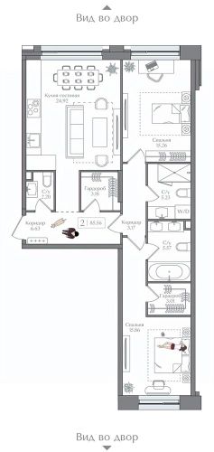Продаётся 2-комнатная квартира в строящемся доме (Корпус 6 (II очередь)), срок сдачи: II-кв. 2027, общей площадью 85.56 кв.м., на 9 этаже. Жилой комплекс с подземной автостоянкой, отдельно стоящими ДОУ, БНК (учебный корпус) и многофункциональным центром.