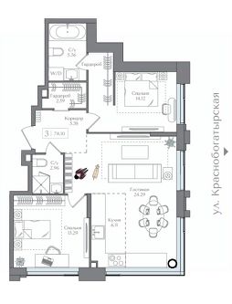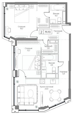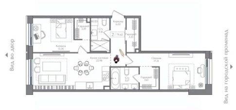 Продаётся 2-комнатная квартира в сданном доме (Корпус 3 (I очередь)), срок сдачи: II-кв. 2025, общей площадью 79.42 кв.м., на 2 этаже. Жилой комплекс с подземной автостоянкой, отдельно стоящими ДОУ, БНК (учебный корпус) и многофункциональным центром.