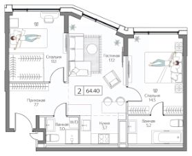 Продаётся 2-комнатная квартира в строящемся доме (Корпус 4 (II очередь)), срок сдачи: II-кв. 2027, общей площадью 88.05 кв.м., на 2 этаже. Жилой комплекс с подземной автостоянкой, отдельно стоящими ДОУ, БНК (учебный корпус) и многофункциональным центром.