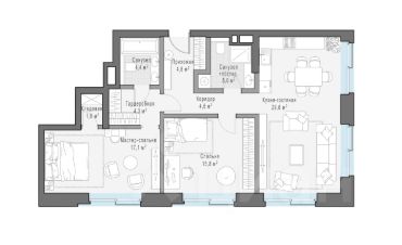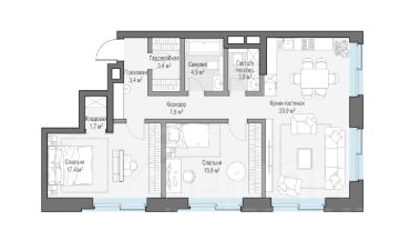 Просторная светлая квартира площадью 107.6 кв. м. Из окон видны тихий приватный двор-парк с ландшафтным дизайном и исторический особняк Демидова. Продуманная планировка позволяет разместить кухню-гостиную и две спальные комнаты с отдельными санузлами и гардеробными.''Лаврушинский'' - бескомпромиссный дом с лучшими видами на Кремль. Благодаря расположению всего в одном километре от Кремля, своей высоте и малоэтажной окружающей застройке, из квартир открываются поразительные прямые виды на главные достопримечательности центра Москвы, включая храм Христа Спасителя и собор Василия Блаженного. Расположение в глубине квартала, посередине парка, дает удивительное для центра ощущение тишины и простора.На закрытой территории находится самый большой на элитном рынке собственный ландшафтный парк площадью 1,4 га с фонтаном, ручьём, зонами для воркаута и тихого отдыха. KIDS LAB: развивающая детская площадка на улице и игровая комната в помещении. FIT LAB: фитнес-клуб с 25-метровым бассейном, beauty room, доступные только для жителей.В проекте уникальный выбор квартир с просторными балконами, пентхаусов с террасами, бассейнами и каминами, максимальными видовыми характеристиками, а также роскошных вилл. Всего - 153 квартиры и 101 продуманное планировочное решение. Высота потолков составляет от 3,5 до 8,25 м. В доме предусмотрен 2х-уровневый паркинг на 279 машино-места.В доме предусмотрен полный комплекс систем комфорта, включающий приточно-вытяжную вентиляцию с тонкой фильтрацией с принципом забора воздуха с высоты 50 метров для повышения продолжительности жизни, отдельный сервисный лифт для обслуживающего персонала и другие современные системы.