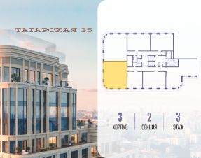 Продается просторная квартира площадью 118.70 м2 в жилом комплексе ТАТАРСКАЯ, 35. Квартира находится в 2 секции корпуса 3. Этаж 3-й из 23.Квартира без чистовой отделки, с просторной кухней 54.20 м2. Жилая площадь 37.70 м2. Высота потолка от 3.50.ТАТАРСКАЯ, 35 - новая архитектурная доминанта Замоскворечья, достопримечательность на фотопанорамах исторического центра Москвы. Элитный дом, созданный для тех, кто умеет смотреть далеко вперед, мыслить масштабно и воплощать собственный сценарий жизни.Вдохновляющие прогулки по променаду набережной, в уютных переулках, в парке ''Зарядье'', в Михайловском саду и Репинском сквере. Наслаждение высоким искусством в Третьяковской галерее, Доме Музыки, театральном музее им. А.А. Бахрушина, театре на Малой Ордынке. За окнами - Кремль, высотка на Котельнической, панорамы Замоскворечья и острова Балчуг, огни Садового кольца.Собственные спорт-румы, детская, репетиторская, бьюти-пространства, деловое пространство с коворкингом, переговорной и сигарной. Собственный трехуровневый фитнесс-центр с бассейном, тренажерным залом, сауной, хаммамом, массажным кабинетом. Площадь двора - 1,8 га, половина территории покрыта деревьями, кустарниками и лужайками.Дом расположен внутри Садового кольца - отсюда в считанные минуты можно добраться до важнейших мест столицы: достопримечательностей и парков, театров и ресторанов, деловых и административных центров. 7 минут до Кремля на автомобиле, 15 минут до Третьяковской галереи и 8 минут до Садового кольца пешком.Планировочные решения и визуализации предварительны, возможны изменения.