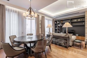 Просторная светлая квартира площадью 127.9 кв. м. Кухня-гостиная обращена окнами в сторону Кремля, а панорамное остекление, моллированное окно и открытый балкон улучшают видовые характеристики квартиры. Продуманная планировка позволяет разместить две отдалённые друг от друга спальни с отдельными санузлами и гардеробными. Из комнат видны тихий приватный двор-парк с ландшафтным дизайном и исторический особняк Демидова. Окна квартиры выходят на две стороны.''Лаврушинский'' - бескомпромиссный дом с лучшими видами на Кремль. Благодаря расположению всего в одном километре от Кремля, своей высоте и малоэтажной окружающей застройке, из квартир открываются поразительные прямые виды на главные достопримечательности центра Москвы, включая храм Христа Спасителя и собор Василия Блаженного. Расположение в глубине квартала, посередине парка, дает удивительное для центра ощущение тишины и простора.На закрытой территории находится самый большой на элитном рынке собственный ландшафтный парк площадью 1,4 га с фонтаном, ручьём, зонами для воркаута и тихого отдыха. KIDS LAB: развивающая детская площадка на улице и игровая комната в помещении. FIT LAB: фитнес-клуб с 25-метровым бассейном, beauty room, доступные только для жителей.В проекте уникальный выбор квартир с просторными балконами, пентхаусов с террасами, бассейнами и каминами, максимальными видовыми характеристиками, а также роскошных вилл. Всего - 153 квартиры и 101 продуманное планировочное решение. Высота потолков составляет от 3,5 до 8,25 м. В доме предусмотрен 2х-уровневый паркинг на 279 машино-места.В доме предусмотрен полный комплекс систем комфорта, включающий приточно-вытяжную вентиляцию с тонкой фильтрацией с принципом забора воздуха с высоты 50 метров для повышения продолжительности жизни, отдельный сервисный лифт для обслуживающего персонала и другие современные системы.