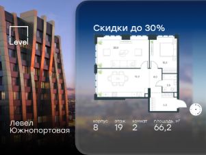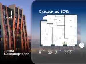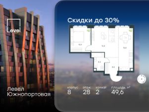 Цена указана с учётом скидки при 100%-й оплате, несубсидированной ипотеке, рассрочке (кроме программы ''Рассрочка 0%'').В северной части района Печатники продается 2-комнатная квартира площадью 50.70 кв.м без отделки. Квартира расположена на 38 этаже 49-этажного корпуса 9 в жилом комплексе комфорт-класса Левел Южнопортовая (компания Level Group/Левел групп). Отличная транспортная доступность:- 10 мин. пешком до станции метро ''Кожуховская'',- 20 мин. пешком до станции МЦК ''Дубровка'',- 3 мин. на авто до ТТК,- 13 мин. на авто до Садового кольца,- 15 мин. на авто до Бульварного кольца. Продуманный архитектурный проект:- авторская архитектура от бюро СПИЧ,- уникальные виды на реку, парки и достопримечательности города,- высота потолков в квартирах до 6 м,- окна высотой до 1,87 м с высоким коэффициентом сопротивления теплоотдаче. Расположение:Жилой комплекс Левел Южнопортовая строится в северной части района Печатники - самой приближенной к центру. Здесь будет сформирован новый район ''Южный порт'', где построят крупный жилой и общественно-деловой центр, аналогичный Москва-Сити. В течение 10-12 лет в этом месте появятся не только жилые дома, но и развитая инфраструктура для жизни и работы. А еще совсем рядом находится набережная Москвы-реки, где планируется построить причалы для речных трамвайчиков и канатную дорогу.Уже сейчас вокруг жилого комплекса работают десятки магазинов и торговых центров, рядом расположено 6 парков, среди которых музей-заповедник ''Коломенское''. В 10 минутах пешком - 2 муниципальных и 2 частных детских сада, 7 общеобразовательных школ.Внутренняя инфраструктура:Для отдыха жителей в каждом корпусе предусмотрено лобби, оснащенное местами для отдыха, гостевыми санузлами и лапомойками, а в отдельных корпусах - камином. За счёт больших окон и высоких потолков пространства будут наполнены воздухом и светом.На первых этажах жилого комплекса откроются магазины, салоны красоты, фитнес-центр. Для детей строятся собственные детский сад и школа. Благоустройство:Внутренний двор комплекса разработан совместно с бюро GAFA. Основная идея - создать аналог Центрального парка в Нью-Йорке, гармонично сочетая высотные здания и большое изолированное парковое пространство.Вся площадь двора-парка будет огорожена и составит более 2 га, из которых 45% - озеленение. Одним из самых важных ландшафтных элементов здесь станет небольшая речка, наполняющаяся во время дождя. Вокруг неё появится сеть из островов, внутри которых расположатся тематические зоны спорта и отдыха. Технологии и инженерия:- автоматическая передача в управляющую компанию показаний квартирных счётчиков,- телефонная связь, телевидение и интернет на базе оптической мультисервисной сети,- гостевой Wi-Fi в лобби и на территории двора,- единый ключ доступа для входа на территорию комплекса.