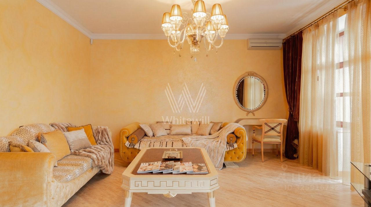 Просторная квартира площадью 249,5м2 с учётом лоджий в комплексе премиум-класса ''Золотые Ключи 2'' на западе Москвы рядом с парком ''Долина реки Раменки''. Квартира расположена на 3 этаже в корпусе 1. Выполнена авторская отделка в классическом стиле с использованием премиальных материалов и мебели: Полы — паркет из карельской берёзы, Двери — массив американского ореха, Стены — венецианская штукатурка, Мебель — Colombo Style Art Deco Collezione, Люстры и настенные бра — Venetian murano glass, Торшер — Colombo Luce ostrich, Кухня — Martini Mobili, Техника — Kuppersbusch, Сантехника — Villeroy & Boch. Установлена система индивидуального кондиционирования. Продуманы различные сценарии освещения — дизайнерские люстры, настенные светильники и споты. Функциональная планировка включает гостиную, кухню-столовую, 2 спальни со своими санузлами и гардеробными, кабинет, гостевой санузел, 4 лоджии и прихожую с гардеробной. Окна, ориентированные на две стороны света, открывают виды на территорию комплекса. За дополнительную плату возможно приобрести 2 машино-места в подземном паркинге. Главное о доме. ''Золотые Ключи 2'' — ансамбль из трёх корпусов премиум-класса, стоящих у природного заказника ''Долина реки Сетунь''. Кирпичные фасады разных оттенков создают тёплую палитру, а панорамные окна выпускают внутрь виды на Воробьёвы горы и парк Победы. Внутри — клубная инфраструктура: spa-комплекс, фитнес-клуб Hills, террасы с бассейнами на верхних этажах и зимние сады. Для детей работают Английская академия, британский детский сад и даже собственный мини-зоопарк. Во дворах устроены теннисные корты, футбольное поле, беседки и зоны для барбекю. Главное о локации. Комплекс стоит в Раменках, в окружении зелёных массивов и рядом с Мосфильмовским прудом. Утро можно начать с пробежки вдоль реки Раменки или прогулки до Ботанического сада МГУ, а вечером заглянуть в ресторан у Кутузовского проспекта или устроить пикник в заказнике ''Сетунь''. Для семей поблизости школа 1586 и детский сад Sun School, а также детский сад 82 МГУ. На территории расположены фитнес-клуб и магазин ''Мираторг''. До центра столицы дорога на машине занимает 20 минут, а удобный выезд на Ломоносовский проспект и Кутузовский ускоряет поездки по городу. Комментарий эксперта. Меня зовут Владимир Пелевин — брокер компании Whitewill. Я отвечаю за продажу этого лота. Свяжитесь со мной, чтобы получить расширенную презентацию, больше фотографий или договориться о просмотре. Могу провести экскурсию по локации и познакомить вас с этим домом. Главное о доме. ''Золотые Ключи 2'' — ансамбль из трёх корпусов премиум-класса, стоящих у природного заказника ''Долина реки Сетунь''. Кирпичные фасады разных оттенков создают тёплую палитру, а панорамные окна выпускают внутрь виды на Воробьёвы горы и парк Победы. Внутри — клубная инфраструктура: spa-комплекс, фитнес-клуб Hills, террасы с бассейнами на верхних этажах и зимние сады. Для детей работают Английская академия, британский детский сад и даже собственный мини-зоопарк. Во д