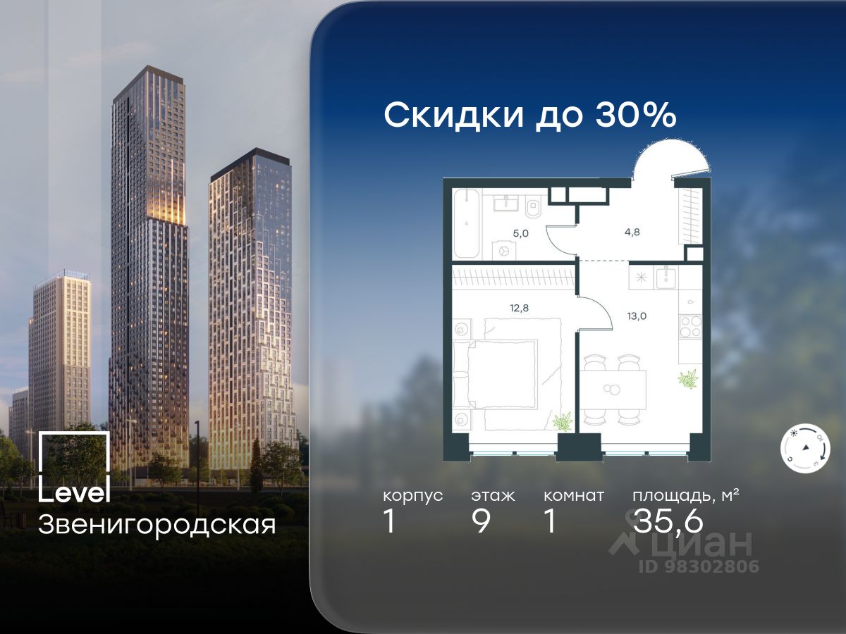 Квартира с одной спальней общей площадью 56 м² в комплексе премиум-класса Prime Park на Ленинградском проспекте. Квартира с предчистовой отделкой white box расположена на 14 этаже в корпусе R1, секция 1. Планировка: гостиная-столовая-кухня, спальня со своей гардеробной, ванная комната, гардеробная с постирочной зоной, холл. Благодаря панорамным окнам пространство наполнено естественным светом. Главное о доме. В PRIME PARK вы живёте в ритме города и отдыхаете как в частном клубе: внутри квартала — 6гектарный ландшафтный парк с аллеями, фонтаном, водой, артобъектами, детскими площадками и воркаутзонами. На первых уровнях — сервисы, кафе, рестораны, салоны и фитнесцентр, чтобы не покидать двор. Архитектурный ансамбль башен до 41 этажа с видовыми квартирами, территория закрыта от машин, паркинг — под землёй. Локация — Ленинградский проспект, 37: близко к центру, но с пригородным комфортом — зелень и крупные парки рядом, городская инфраструктура в шаговой доступности. Главное о локации. Хорошёвский — ''город в городе'': утро — пробежка по аллеям парка Ходынское поле с прудами, детскими площадками и сухим фонтаном, днём — отдых на траве или катание на роликах и самокатах. Для спорта — ВЭБ Арена (матчи ЦСКА, концерты) и Дворец спорта Мегаспорт (ледовые шоу, турниры). Перед премьерой — бокал в брассери на Ходынском бульваре или стейк в Torro Grill. Для семьи важна учебная инфраструктура: школы 1409, 1288 и школа 141 им. Рихарда Зорге, входящая в лучшие подборки округа. Редкое сочетание зелени, спорта, гастрономии и сильных школ без дальних переездов. Комментарий эксперта. Меня зовут Даниэль Волански — брокер компании Whitewill. Я отвечаю за продажу этого лота. Свяжитесь со мной, чтобы получить расширенную презентацию, больше фотографий или договориться о просмотре. Могу провести экскурсию по локации и познакомить вас с этим домом. ID 315 118.
