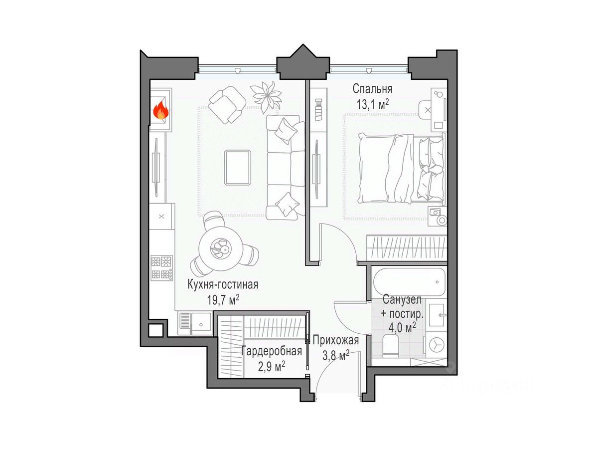 Односпальная квартира с камином и французским балконом в спальне. В прихожей гардеробная 3,0 кв.м. Окна выходят на запад, что позволит наслаждаться закатом и любоваться огнями ночного города. ''Достижение'' - единственный дом с торжественной архитектурой в окружении бескрайних парков на любой вкус: парк ''Дубовая роща'', обновленный классический парк ''Останкино'', самый известный парк России ВДНХ и крупнейший в Европе ботанический сад. Дом находится в непосредственной близости от центра города: до Садового кольца на автомобиле - 15 минут, 700 м до станции метро ''Бутырская'', а от нее всего 3 станции на метро - и вы на Цветном бульваре. Архитектура проекта - современное прочтение торжественного и изящного стиля ар-деко, который, как и сталинский ампир, сформировался в результате развития идей чикагской школы. В доме 6 секций, 115 вариантов продуманных планировочных решений - от уютных студий до просторных пентхаусов с дровяным камином. В каждой квартире предусмотрен полный комплекс систем комфорта: принудительная центральная вентиляция с фильтрацией воздуха, очистка воды до уровня питьевой, круглогодичное горячее водоснабжение, быстрые бесшумные лифты, которые идут прямо в паркинг, продуманная подготовка под кондиционирование и другие технологические решения. В доме ''Достижение'' общественные пространства и квартира тоже гармонично дополняют друг друга, как части единого целого. Здесь есть инфраструктурный центр Clubhouse только для жителей, открывающий возможности для общения и детского развития: клубная гостиная жителей по стандарту Friend's Lab и детская игровая комната 250 кв.м. в концепции Kid's Lab. На площади 1,7 гектара создан живописный парк с террасным склоном, в котором растут луговые травы, кустарники и деревья. Пространство ландшафтного парка разделено на зоны для активного и спокойного отдыха с зелёными уголками для любителей тишины. Для спокойного отдыха: тихие места с беседками и шезлонгами, клубная гостиная в концепции Friend's Lab с открытой террасой и гамаками, зона для барбекю, смотровая галерея, уютный пруд, а также пять пеших маршрутов для променада. Для активного отдыха: универсальная многофункциональная спортивная площадка, отдельная зона для занятий workout и бесплатный фитнес-зал только для жителей по стандарту Fit Lab. В центральной части парка расположен амфитеатр со сценой для представлений и проведения мероприятий. Для гармоничного развития маленьких жителей - пространства по стандарту Kid's Lab для гармоничного развития детей всех возрастов: детская площадка, игровая комната, рельефная площадка для общения со сверстниками, где можно заниматься паркуром, танцевать и играть в настольный теннис.