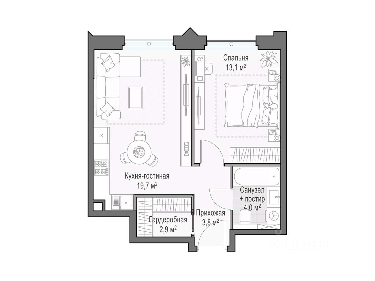 Комфортная односпальная квартира. В кухне-гостиной два окна. В прихожей предусмотрено место под шкаф. Окна выходят на ландшафтный двор-парк. ''Достижение'' - единственный дом с торжественной архитектурой в окружении бескрайних парков на любой вкус: парк ''Дубовая роща'', обновленный классический парк ''Останкино'', самый известный парк России ВДНХ и крупнейший в Европе ботанический сад. Дом находится в непосредственной близости от центра города: до Садового кольца на автомобиле - 15 минут, 700 м до станции метро ''Бутырская'', а от нее всего 3 станции на метро - и вы на Цветном бульваре. Архитектура проекта - современное прочтение торжественного и изящного стиля ар-деко, который, как и сталинский ампир, сформировался в результате развития идей чикагской школы. В доме 6 секций, 115 вариантов продуманных планировочных решений - от уютных студий до просторных пентхаусов с дровяным камином. В каждой квартире предусмотрен полный комплекс систем комфорта: принудительная центральная вентиляция с фильтрацией воздуха, очистка воды до уровня питьевой, круглогодичное горячее водоснабжение, быстрые бесшумные лифты, которые идут прямо в паркинг, продуманная подготовка под кондиционирование и другие технологические решения. В доме ''Достижение'' общественные пространства и квартира тоже гармонично дополняют друг друга, как части единого целого. Здесь есть инфраструктурный центр Clubhouse только для жителей, открывающий возможности для общения и детского развития: клубная гостиная жителей по стандарту Friend's Lab и детская игровая комната 250 кв.м. в концепции Kid's Lab. На площади 1,7 гектара создан живописный парк с террасным склоном, в котором растут луговые травы, кустарники и деревья. Пространство ландшафтного парка разделено на зоны для активного и спокойного отдыха с зелёными уголками для любителей тишины. Для спокойного отдыха: тихие места с беседками и шезлонгами, клубная гостиная в концепции Friend's Lab с открытой террасой и гамаками, зона для барбекю, смотровая галерея, уютный пруд, а также пять пеших маршрутов для променада. Для активного отдыха: универсальная многофункциональная спортивная площадка, отдельная зона для занятий workout и бесплатный фитнес-зал только для жителей по стандарту Fit Lab. В центральной части парка расположен амфитеатр со сценой для представлений и проведения мероприятий. Для гармоничного развития маленьких жителей - пространства по стандарту Kid's Lab для гармоничного развития детей всех возрастов: детская площадка, игровая комната, рельефная площадка для общения со сверстниками, где можно заниматься паркуром, танцевать и играть в настольный теннис.