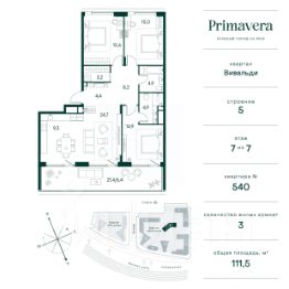 Клубный город на реке Primavera — это современный жилой комплекс премиум-класса, расположенный на первой береговой линии Москвы-реки в экологически чистом районе Покровское-Стрешнево.Под панорамными окнами квартир находится собственный экопарк с продуманной сетью прогулочных дорожек и современными детскими и спортивными площадками. За парком расположена набережная с собственным пляжем и зонами для отдыха.Клубный город на реке Primavera предлагает широкий выбор планировок для различных жизненных сценариев: от просторных однокомнатных квартир до пентхаусов и жилых помещений с террасами и патио. Выберите из 120 вариантов эргономичных планировок стандартного и евроформата.Из каждой квартиры открываются красивые виды на реку с углом обзора в 270 градусов. Дизайнерские лобби предлагают панорамный обзор на благоустроенный двор. Высокие потолки в 6 метров и качественная отделка создают атмосферу, схожую с пятизвездочными отелями.В Primavera есть всё необходимое для комфортной жизни в мегаполисе:•Образование для детей в шаговой доступности: 4 школы, 8 детских садов и развивающие центры с кружками и секциями.•Удобства на расстоянии приятной прогулки: супермаркеты, кафе, рестораны с верандами, салоны красоты, аптеки и многофункциональный центр для шоппинга и развлечений.•Умный дом: автоматизированное бесконтактное управление основными системами доступа и безопасности через мобильное приложение.Клубный город на реке Primavera выгодно сочетает комфорт городской жизни с близостью к природе. Живите в месте, где все создано для вашего удобства!