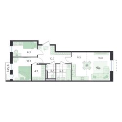 Продаётся 3-комнатная квартира в строящемся доме (Театральный, к2), срок сдачи: II-кв. 2026, общей площадью 67 кв.м., на 3 этаже. Бутик-квартал ''G3 Театральный''