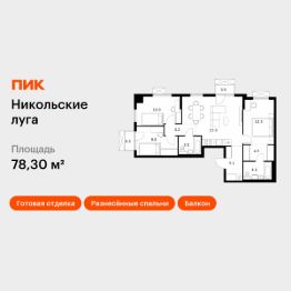 Продаётся 3-комн. квартира площадью 78,3 кв.м на 5 этаже 17 этажного дома (Корпус 4, Секция 3) проекта ПИК Никольские луга. Светлый просторный подъезд на уровне земли, функциональная планировка, большие окна, c отделкой. Жилой квартал ''Никольские луга'' расположен на юго-западе Москвы, в 17 минутах пешком от МЦД ''Щербинка''. Дорога на автомобиле до МКАД займёт 20 минут, а до Варшавского шоссе — всего 5 минут. Неподалёку находятся два больших парка — Бутовский лесопарк и парк ''Южное Бутово''.''Никольские луга'' — большой проект, который отражает концепцию ''город в городе''. Он отличается современной архитектурой, а корпуса будут облицованы плиткой тёплых натуральных оттенков. Благодаря витражному остеклению на входе, в просторные лобби будет попадать ещё больше света. В проекте предусмотрены квартиры с балконами, в том числе угловыми с панорамным остеклением.Рядом с домами будет всё необходимое для комфортной жизни. Специально для проекта мы построим три детских сада, две школы и спортивный комплекс. Пруд на территории квартала будет благоустроен, а рядом с ним появятся места для отдыха у воды.На первых этажах домов откроются магазины и необходимые сервисы, в каждом дворе разместятся детские и спортивные площадки, а через весь район протянется несколько пешеходных бульваров. Артикул 963239 (Застройщик ООО ''СПЕЦИАЛИЗИРОВАННЫЙ ЗАСТРОЙЩИК ''ТЕРИБЕРСКИЙ БЕРЕГ'')