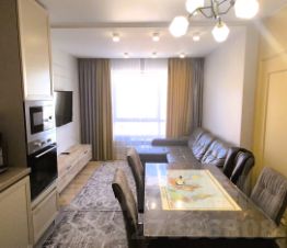 Семейная благоустроенная квартира со всеми удобствами на комфортном 10 этаже.Квартира с 3-мя полноценными изолированными комнатами, 2-мя сан. узлами, гардеробной и просторной кухней- столовой. Дизайнерский ремонт в стиле современного минимализма. Полностю оборудованная и укомплектованная встроенная кухня с дорогой каменной столешницей: варочная панель, духовой шкаф, микроволновая печь, встроенный холодильник, измельчитель отходов, мощная эффективная вытяжка.Благодаря современным решениям в отделке и дорогим материалам квартиру легко преобразовать под собственные пожелания, поменяв только колористическое решение стен..