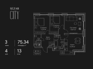 Продается 3-комнатная квартира в ЖК SEZAR CITY на 6 этаже. Общая площадь квартиры составляет 78,34 кв.м. Квартира без отделки. Срок сдачи - 2027 год.Архитектурный облик SEZAR CITY в полной мере выражает глубокую философию ар-деко, в основе которой - красота, удовольствие и комфорт. Облик каждого дома деликатно продолжает традиции величественной архитектуры зданий на престижных магистралях Москвы. В рельефной пластике экстерьеров корпусов особенно эффектно выделяется арочный стиль. Комбинации материалов и форм, обилие элементов декора придают фасадам зданий собственный неповторимый облик и изысканно дополняют их грацию.Планировки всех квартир спроектированы по стандартам премиум-класса, когда функциональность помещений дополняет высокий комфорт проживания. Элементы лобби тщательно продуманы, чтобы впечатлять и вдохновлять. Пространство каждого лобби оформлено дорогими материалами и мебелью. В большинстве квартир предусмотрены эркеры и просторные лоджии.Для комфорта жителей предусмотрен подземный паркинг с кладовыми помещениями и автомойкой. В каждом лобби расположена стойка консьержа. В концепции приватных дворов лежат узнаваемые элементы и формы классических парковых пространств, в т. ч. амфитеатры, аркады и галереи. SEZAR CITY - новый проект компании, в полной мере сочетающий в себе все качества недвижимости особой ценности.Преимущества локации:- Хорошевский район - это престижный и динамично развивающийся район Москвы с богатой историей. Здесь открываются транспортно-пересадочные узлы, строятся деловые кластеры, создаются новые общественные пространства и парки.- SEZAR CITY находится в самом центре Большого Сити. Концепция развития этой территории предусматривает формирование принципиально нового городского центра с современной общественно-жилой застройкой.Позвоните сегодня в офис продаж, и мы с удовольствием пригласим вас в гости. Менеджер подробно расскажет о преимуществах жилого комплекса за чашкой ароматного кофе.
