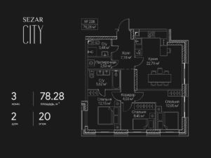 Продается 3-комнатная квартира в ЖК SEZAR CITY на 20 этаже. Общая площадь квартиры составляет 78,28 кв.м. Квартира без отделки. Срок сдачи - 2027 год.Архитектурный облик SEZAR CITY в полной мере выражает глубокую философию ар-деко, в основе которой - красота, удовольствие и комфорт. Облик каждого дома деликатно продолжает традиции величественной архитектуры зданий на престижных магистралях Москвы. В рельефной пластике экстерьеров корпусов особенно эффектно выделяется арочный стиль. Комбинации материалов и форм, обилие элементов декора придают фасадам зданий собственный неповторимый облик и изысканно дополняют их грацию.Планировки всех квартир спроектированы по стандартам премиум-класса, когда функциональность помещений дополняет высокий комфорт проживания. Элементы лобби тщательно продуманы, чтобы впечатлять и вдохновлять. Пространство каждого лобби оформлено дорогими материалами и мебелью. В большинстве квартир предусмотрены эркеры и просторные лоджии.Для комфорта жителей предусмотрен подземный паркинг с кладовыми помещениями и автомойкой. В каждом лобби расположена стойка консьержа. В концепции приватных дворов лежат узнаваемые элементы и формы классических парковых пространств, в т. ч. амфитеатры, аркады и галереи. SEZAR CITY - новый проект компании, в полной мере сочетающий в себе все качества недвижимости особой ценности.Преимущества локации:- Хорошевский район - это престижный и динамично развивающийся район Москвы с богатой историей. Здесь открываются транспортно-пересадочные узлы, строятся деловые кластеры, создаются новые общественные пространства и парки.- SEZAR CITY находится в самом центре Большого Сити. Концепция развития этой территории предусматривает формирование принципиально нового городского центра с современной общественно-жилой застройкой.Позвоните сегодня в офис продаж, и мы с удовольствием пригласим вас в гости. Менеджер подробно расскажет о преимуществах жилого комплекса за чашкой ароматного кофе.
