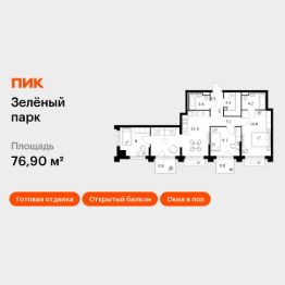 Продаётся 3-комн. квартира площадью 76,9 кв.м на 2 этаже 13 этажного дома (Корпус 5.3, Секция 3) проекта ПИК Зелёный парк. Светлый просторный подъезд на уровне земли, функциональная планировка, большие окна, c отделкой. Большой квартал с оригинальной архитектурой в обжитом районе Зеленограда. От него до станции МЦД-3 ''Зеленоград-Крюково'' — 20 минут пешком, до Кутузовского шоссе можно доехать на машине за 3 минуты, а до Пятницкого шоссе — за 5 минут.Характер ''Зелёного парка'' отражён в архитектуре. Квартал состоит из уютных разноэтажных блоков с оригинальными акцентами. Цветовая палитра проекта спокойная и сдержанная: оттенки белого и коричневого сочетаются с пастельным розовым и мятным.В проекте запланированы также два детских сада, две школы и паркинг. На первых этажах откроются магазины, кафе и другие сервисы — чтобы купить кофе и свежий хлеб к завтраку, можно будет просто спуститься на лифте. В уютных дворах-парках появятся места для отдыха, детские площадки, кофейни и зоны отдыха.Рядом — Зеленоградский лес, Парк Победы и Михайловский пруд, где можно гулять и заниматься спортом. У жителей ''Зелёного парка'' будет возможность получить московскую прописку.Для любителей спорта в 10 минутах пешком от квартала — велодром с BMX-трассой, физкультурно-оздоровительный комплекс Горизонт, а также лыжероллерная трасса длиной около 3 км. Артикул 1031015 (Застройщик АО ''СПЕЦИАЛИЗИРОВАННЫЙ ЗАСТРОЙЩИК ''ЗЕЛЕНОГРАДСКИЙ'')