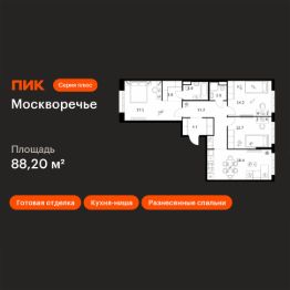 Продаётся 3-комн. квартира площадью 88,2 кв.м на 10 этаже 12 этажного дома (Корпус 2.3, Секция 4) проекта ПИК Москворечье. Светлый просторный подъезд на уровне земли, функциональная планировка, большие окна, c отделкой. Архитектурный проект разработан российским бюро Saga. Он представляет собой живую архитектурную среду, вдохновленную атмосферой исторических центров и разнообразием стилей. При этом каждый элемент разработан с вниманием к деталям и функциональности.Первая очередь, состоящая из четырех корпусов (1.1 - 1.4), запланирована к сдаче уже в 2027 году. Её общая площадь составит 103,3 тыс. м². Рядом с ней также появятся социальные объекты: образовательный центр, дошкольного и школьного образования на 3000 мест, включающий школу на 2500 мест, детские сады на 500 мест. Также на территории жилого квартала откроются два уютных детских сада, каждый на 350 мест и школа на 1350 мест.Кроме того, в ''Москворечье'' будет построена поликлиника, которую ежедневно смогут посещать до 450 пациентов. Внутри будет установлено современное оборудование для диагностики и профилактики. Также рядом будут созданы общественные пространства, технопарк, который обеспечит район новыми рабочими местами, досуговый центр, спортивные объекты и торговый центр.Все квартиры сдаются с готовой отделкой - заселиться можно сразу после получения ключей. В квартирах будет натяжной потолок, качественный ламинат, обои под покраску с лаконичной фактурой, межкомнатные и входные двери с дополнительной шумоизоляцией.Лобби выполнены в стиле современного минимализма. В отделке использованы долговечные материалы с выразительной фактурой: кирпич сочетается с мраморным бесшовным полом из наливного материала терраццо, гладкой плиткой и стеклом. Для автовладельцев будет доступен подземный паркинг.Особое внимание уделяется зоне первых этажей, где будет сформирована насыщенная городская среда. Здесь появятся общественные пространства, пешеходные галереи, коммерческие помещения и другие полезные сервисы для жителей. Точкой притяжения станет пешеходный бульвар, где будут расположены игровые площадки для детей разных возрастов и спортивные зоны.Квартал отличается хорошей транспортной доступностью. Ближайшие станции метро у жилого квартала ''Москворечья'' - ''Каширская'', ''Кантемировская'' и БКЛ ''Варшавская'', 1 минута на авто до ЮВХ, 15 минут до ТТК и МКАД. В 15 минутах от проекта парк культуры и отдыха ''Долина реки Чертановка'' и парк ''Коломенское''. До музея Царицыно, где регулярно проходят выставки и концерты - 20 минут на автомобиле. Артикул 1019685 (Застройщик ООО ''СЗ ИМПУЛЬС'')