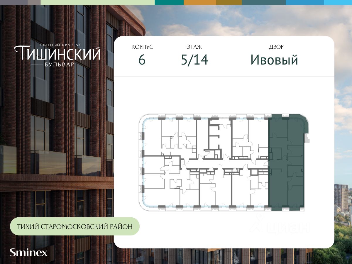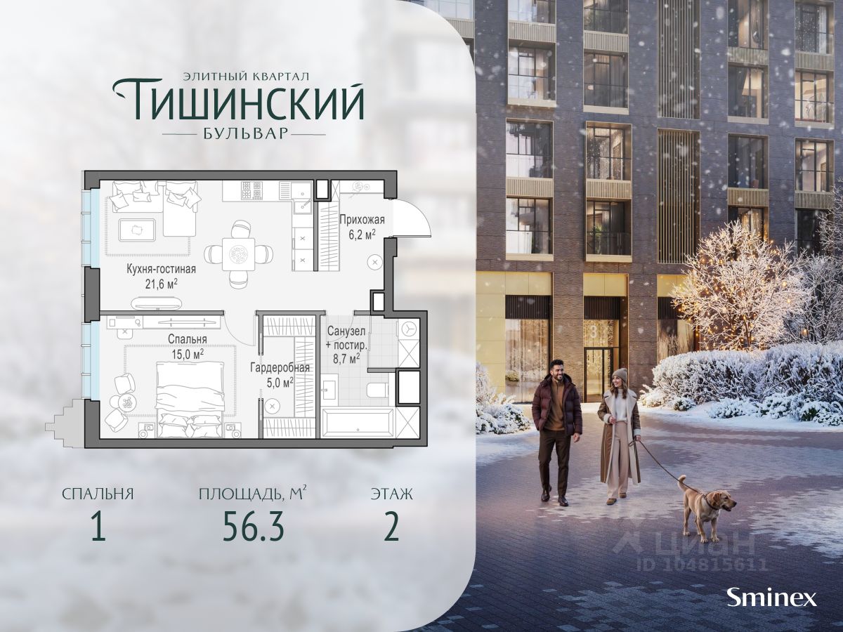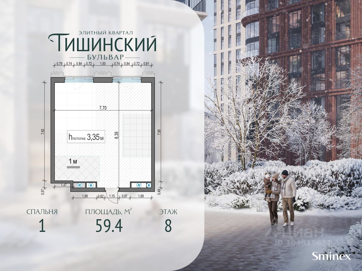 В продаже 1-комнатная квартира квартира в элитном квартале ''Тишинский бульвар''. Общая площадь квартиры - 59.40 кв.м. Этаж 8 из 14. Корпус Ивовый 6. ''Тишинский бульвар'' - тихий зелёный элитный квартал на Тишинке, в престижном и комфортном районе центра Москвы. В нём создан уникальный для элитного дома прогулочный бульвар в своём огромном парке 1,9 га. В парке оборудованы зоны для активного и тихого отдыха, крытые галереи, приватные зелёные комнаты, многофункциональная спортивная площадка, воркаут-зона, детская площадка, сухой фонтан, ручей. В пешей доступности Римско-католический кафедральный собор. Всего в полутора километрах от квартала находятся Патриаршие пруды - излюбленное место для летних прогулок, воскресных бранчей и романтических ужинов. Белая площадь расположена ещё ближе - на расстоянии 1,2 километра. Это точка концентрации деловой жизни и модных ресторанов. В ''Тишинский бульваре'' только для жителей и их гостей создан уникальный для элитного дома прогулочный бульвар в собственном огромном парке площадью 2,1 га, который занимает 70% территории квартала. Бульвар проходит через весь квартал и объединяет в общее пространство три двора: Кленовый, Рябиновый и Ивовый. В парке созданы крытые галереи и приватные зелёные комнаты для отдыха и медитаций в любую погоду. Насыщенное озеленение многолетними растениями с разными периодами цветения сохраняет территорию квартала красивой круглый год. В квартале насыщенная инфраструктура только для жителей, включая Clubhouse. Здесь оборудованы пространства для здорового образа жизни по стандарту FIT LAB: в парке - многофункциональная спортивная площадка, воркаут-зона, место для занятий йогой и медитации, бесплатный фитнес-клуб с бассейном. Для маленьких жителей доступны детская площадка и игровая комната по стандарту KIDS LAB. Дома оснащены самыми полными и лучшими системами.