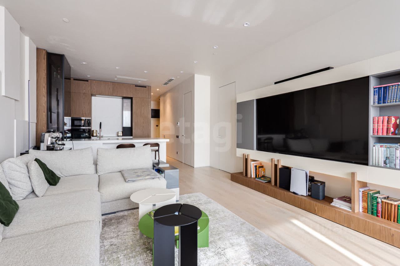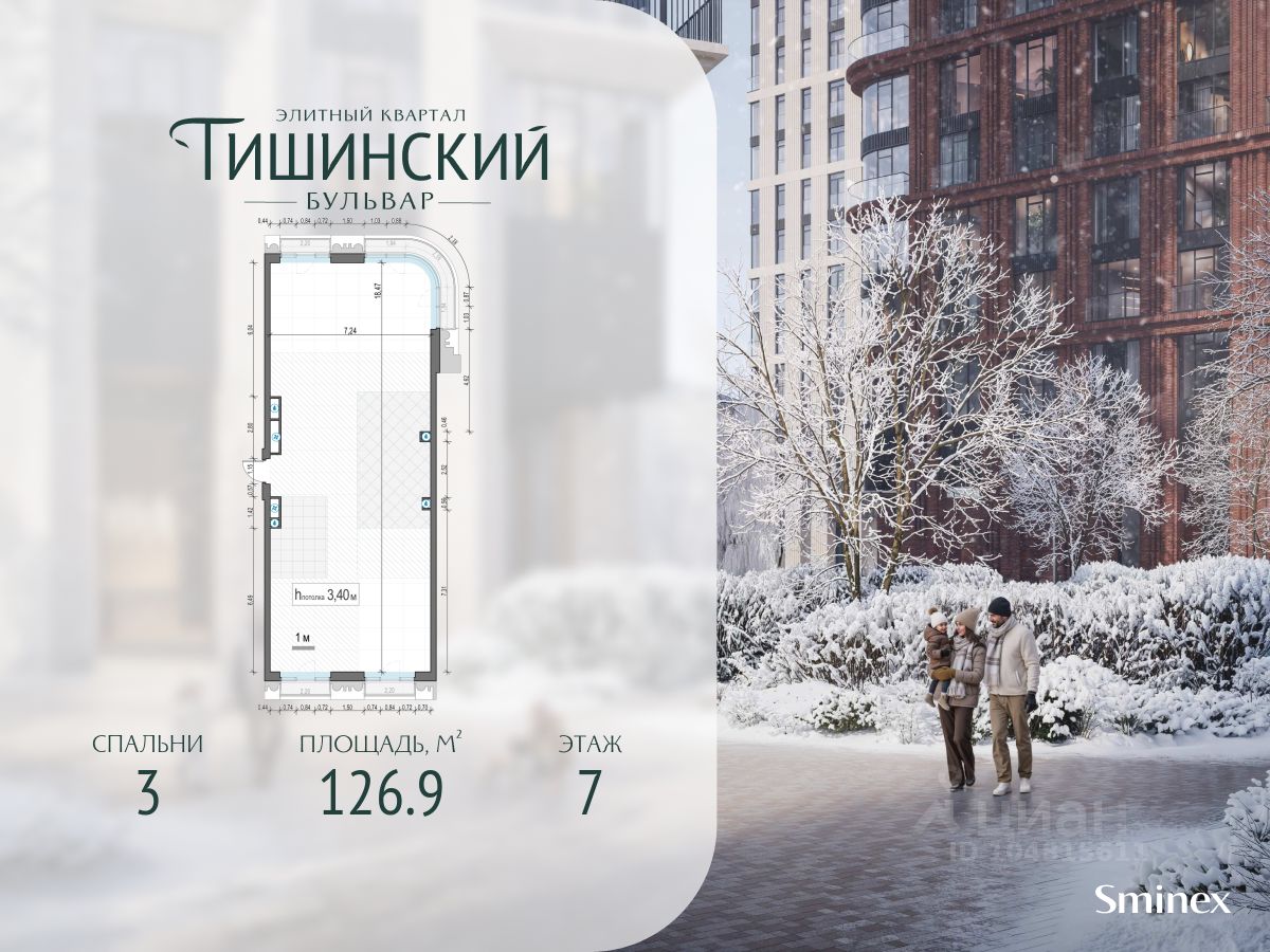 В продаже 3-комнатная квартира квартира в элитном квартале ''Тишинский бульвар''. Общая площадь квартиры - 126.90 кв.м. Этаж 7 из 14. Корпус Ивовый 6. ''Тишинский бульвар'' - тихий зелёный элитный квартал на Тишинке, в престижном и комфортном районе центра Москвы. В нём создан уникальный для элитного дома прогулочный бульвар в своём огромном парке 1,9 га. В парке оборудованы зоны для активного и тихого отдыха, крытые галереи, приватные зелёные комнаты, многофункциональная спортивная площадка, воркаут-зона, детская площадка, сухой фонтан, ручей. В пешей доступности Римско-католический кафедральный собор. Всего в полутора километрах от квартала находятся Патриаршие пруды - излюбленное место для летних прогулок, воскресных бранчей и романтических ужинов. Белая площадь расположена ещё ближе - на расстоянии 1,2 километра. Это точка концентрации деловой жизни и модных ресторанов. В ''Тишинский бульваре'' только для жителей и их гостей создан уникальный для элитного дома прогулочный бульвар в собственном огромном парке площадью 2,1 га, который занимает 70% территории квартала. Бульвар проходит через весь квартал и объединяет в общее пространство три двора: Кленовый, Рябиновый и Ивовый. В парке созданы крытые галереи и приватные зелёные комнаты для отдыха и медитаций в любую погоду. Насыщенное озеленение многолетними растениями с разными периодами цветения сохраняет территорию квартала красивой круглый год. В квартале насыщенная инфраструктура только для жителей, включая Clubhouse. Здесь оборудованы пространства для здорового образа жизни по стандарту FIT LAB: в парке - многофункциональная спортивная площадка, воркаут-зона, место для занятий йогой и медитации, бесплатный фитнес-клуб с бассейном. Для маленьких жителей доступны детская площадка и игровая комната по стандарту KIDS LAB. Дома оснащены самыми полными и лучшими системами.